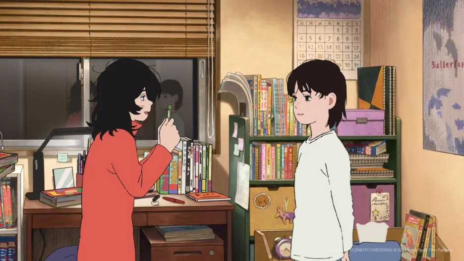 둘은 그림뿐만 아니라 일상과 감정을 공유하며 더욱 각별한 사이로 발전하는데, 늘 방에만 갇혀서 그림만 그리던 히키코모리 '쿄모토'가 '후지노'를 만나면서 바깥세상의 즐거움을 느껴. 후지노는 그런 쿄모토를 친동생처럼 대하게 되고, 언니로서의 책임감을 갖게 돼. 둘이 함께하는 시간은 영화 속에서 매우 빠르게 지나가지만, 그 찰나의 순간에서도 그들이 교류하는 감정선이 꽤나 따뜻하고 뭉클하게 다가와. 후지노와 쿄모토를 제외한 모든 사람을 무채색으로 그려낸 연출은 마치 세상에 둘만 존재하는 것처럼 느껴지도록 만들어.