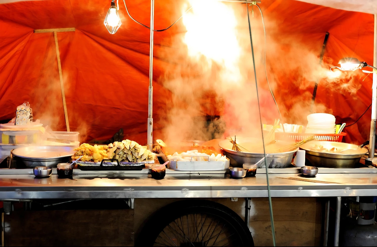 작은 가판대에서 떡볶이 등 간단한