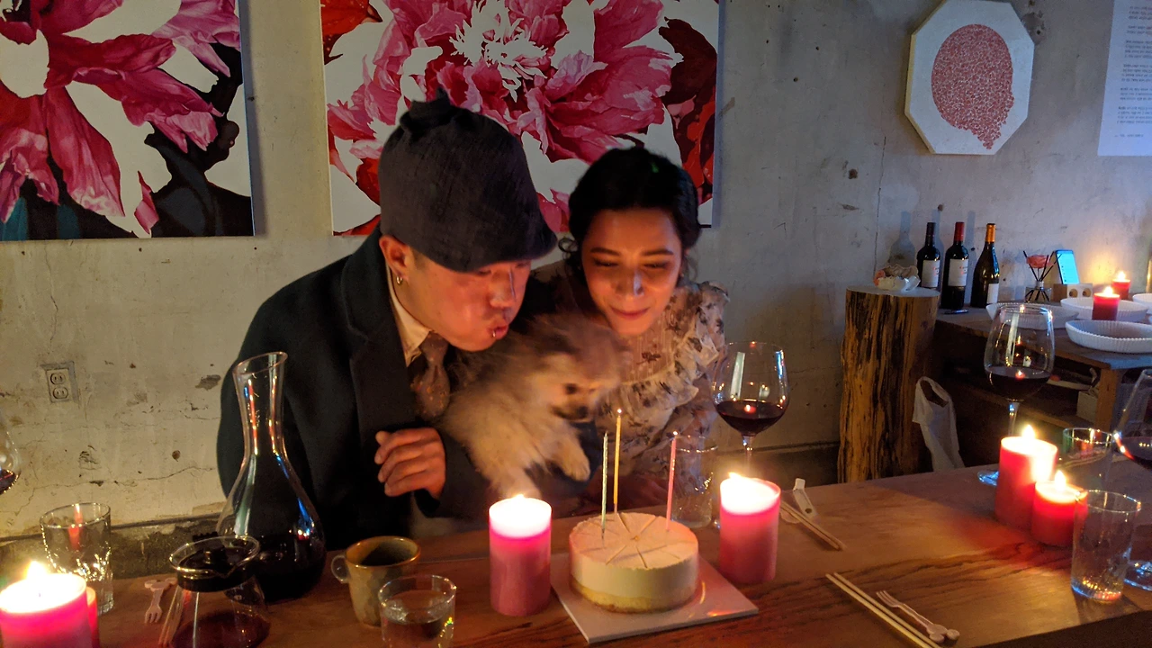 우리들만의 작은 결혼식은 흔한 축사나 간단한 절차나 형식도 없었고, 그저 작은 케이크에 신랑 신부와 키우는 강아지를 의미하는 작은 초 세 개를 꽂고 불을 붙인 후