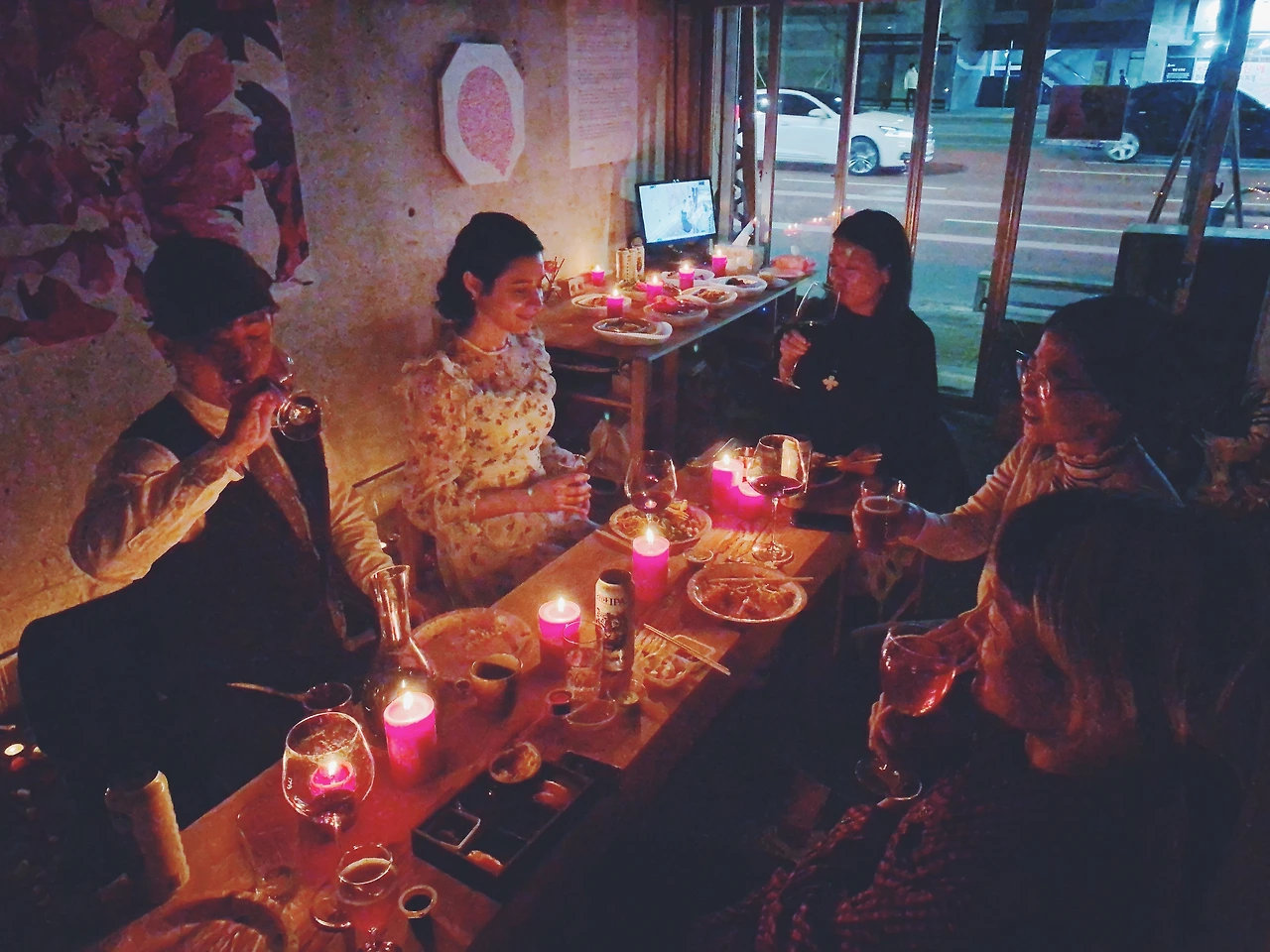 저렴하면서도 실용적인 물건들이 많은 다이소에 가서 분홍빛 향기 나는 초 240개와 3000원짜리 와인컵과 접시, 방향제 등등을 11만 5천 원을 주고 사서 꽃집에 간 후에