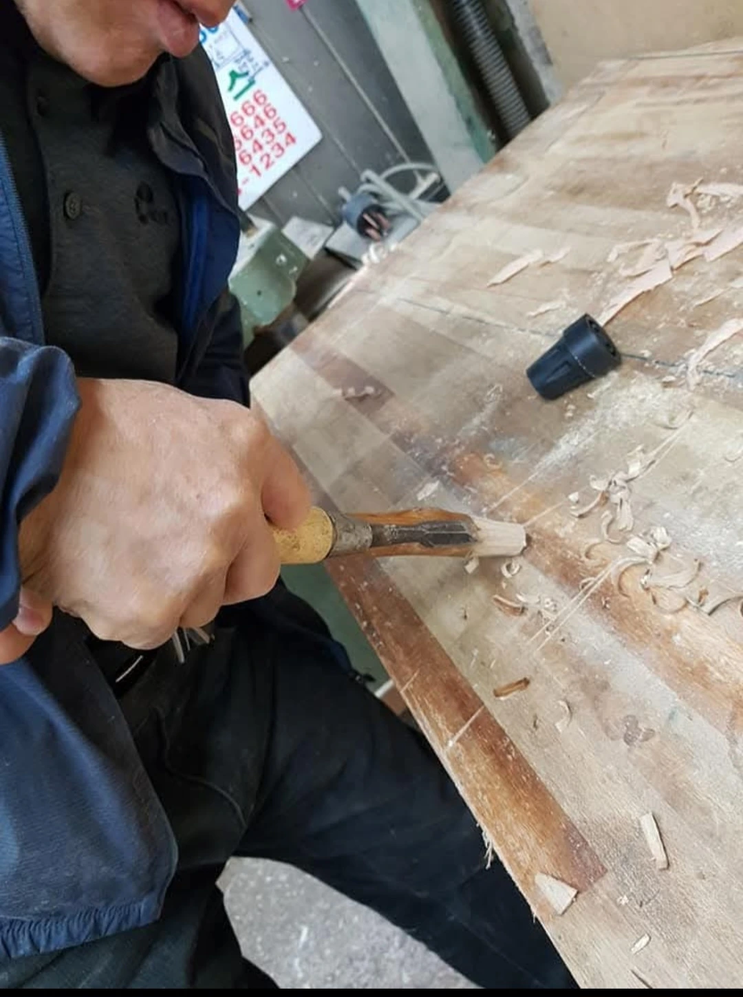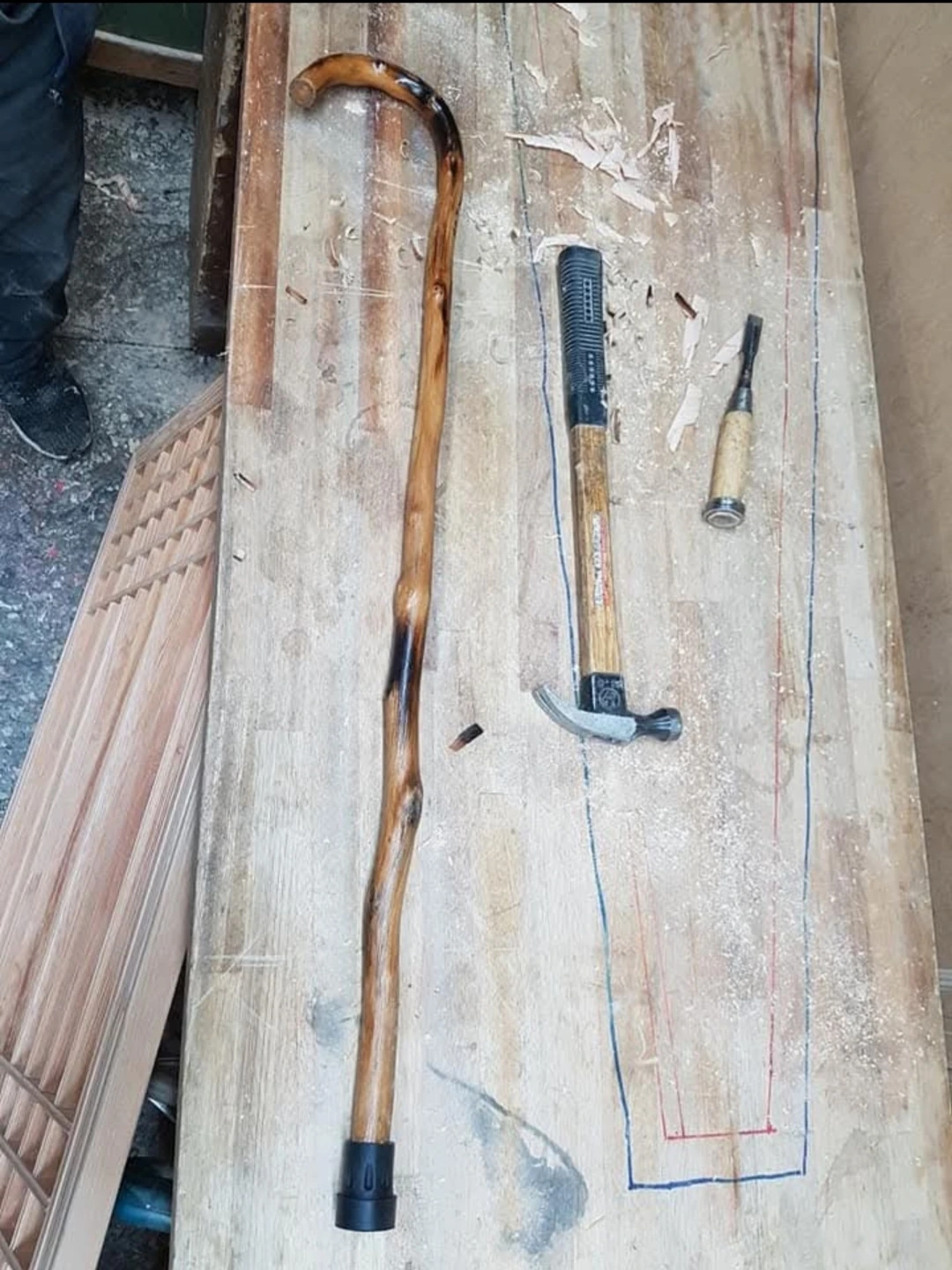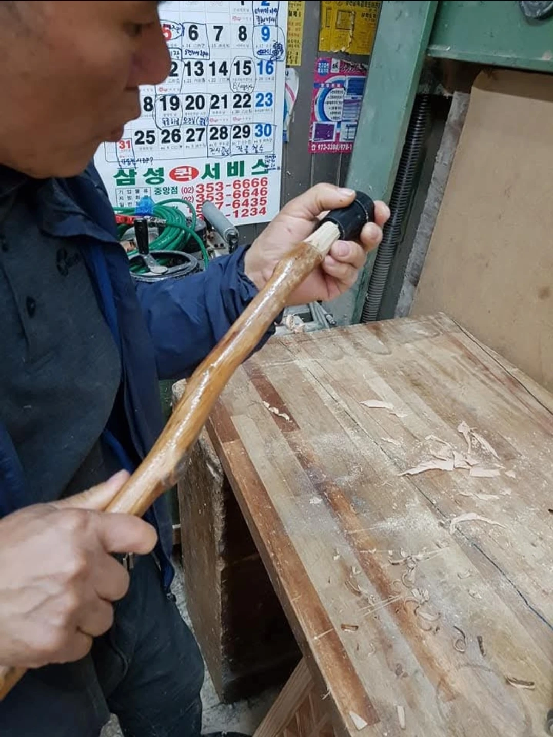 방금은 연세가 지긋하신 노부부 커플이 오셔서는 할아버지께서 걸으실 때 사용하시는 지팡이의 끝부분에 나무를 깎아 고무를 끼워 달라는 부탁을 받고서 끌을 이용해 나무를 다듬은 후에 고무를 끼워드렸다.