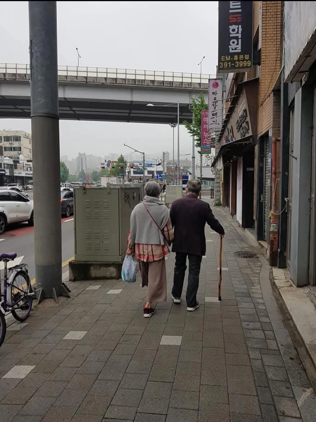 두 분의 꼭 마주 잡은 두 손과 남은 한 손에는 새롭게 단장한 지팡이로 걸어가시는 뒷모습이 가슴이 살짝 뭉클하게 아름다워 보이며 부러움을 자아냈다.
