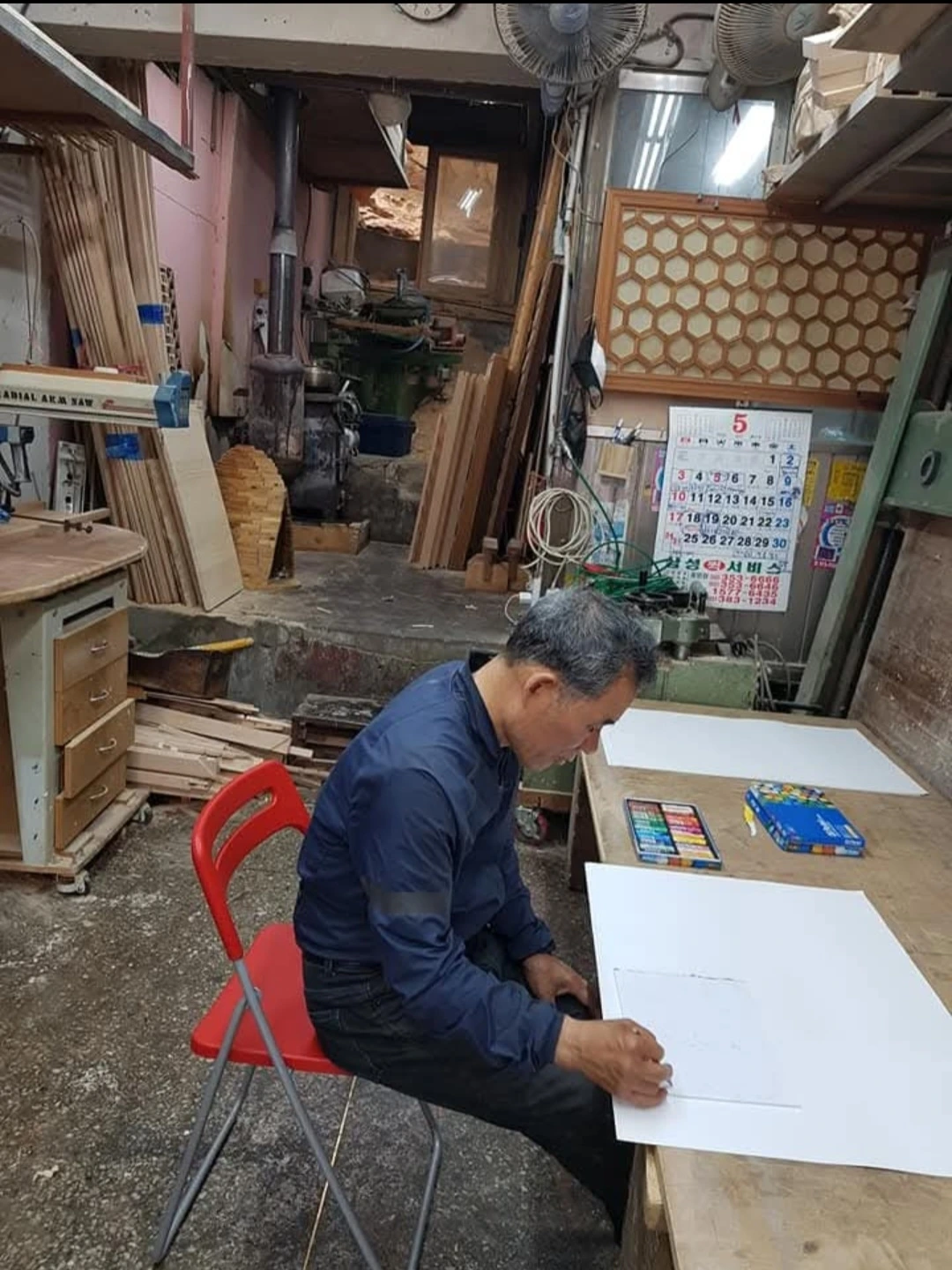 아빠는 먼저 작은 종이 위에 섬세하게 기억을 떠올리며 스케치를 한 후 큰 종이에 꼼꼼하고 사실적으로 옮겨가면서, 묻지도 않았는데 하나하나 설명을 해나가며 아이처럼 신나게 그리기 시작하셨다.