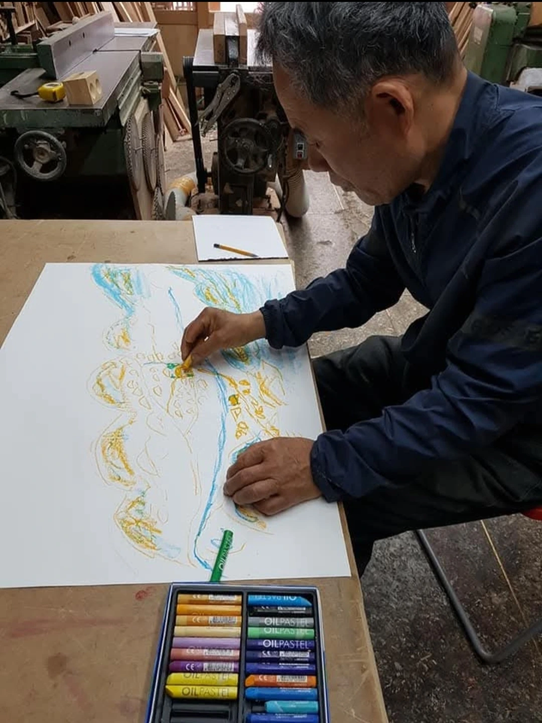 그러다 전날 사랑하는 아내와 함께, 잘 그리진 못해도 가벼운 마음으로 하나의 그림을 완성한 후 처음 느껴보았던 즐거움을 아빠와도 나누기 위해