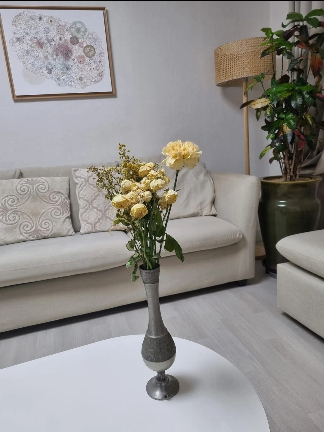 거실 테이블에 올려 두었다.