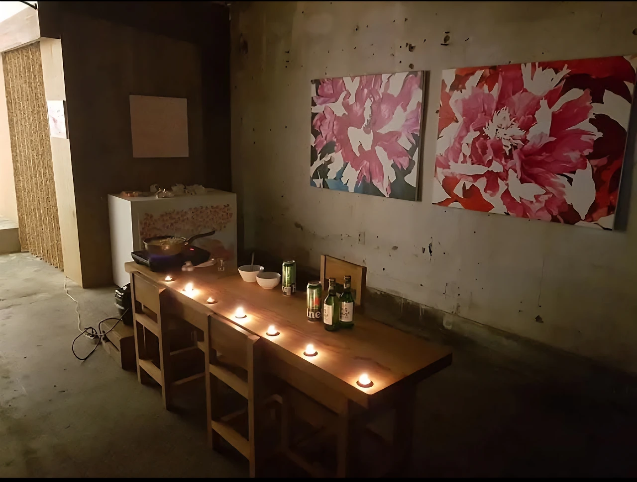 소주를 한잔씩 마시며 눈이 얼마나 내리고 있는지 가끔씩 돌아보는 창밖 너머로는