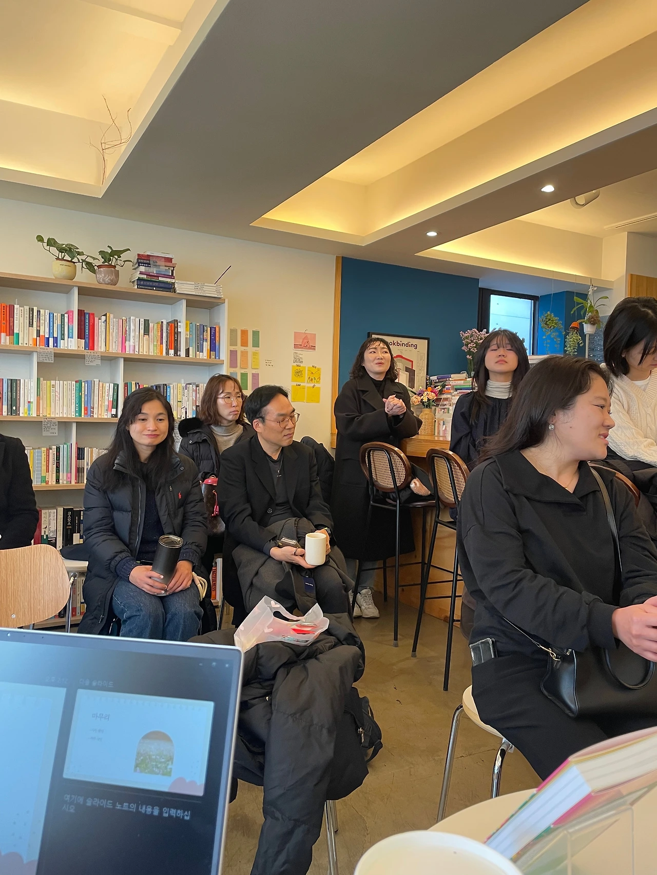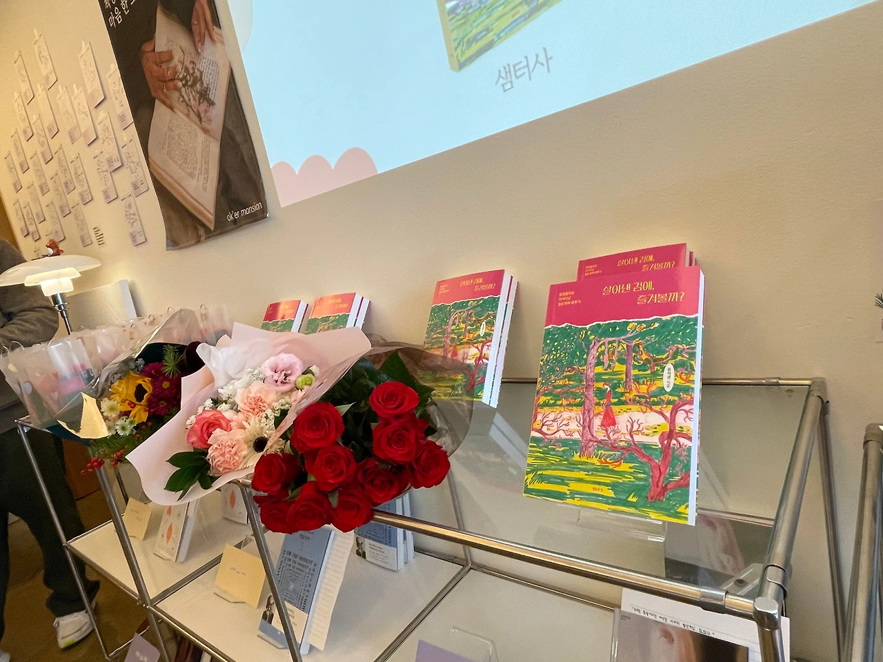 애정하고 좋아하는 '나의' 출판사 (나의 라고 붙여도 되죠??) 샘터에서 영업 부장님, 편집자님, 마케터 두 분까지 무려 네 분이 출동하셨다. 황금 같은 직장인의 휴무 일요일 오후에 너무 죄송하고 감사한 마음이다. 한 권이라도 더 팔아야겠다 결의를 다질 수밖에 없다!! 아자아자!