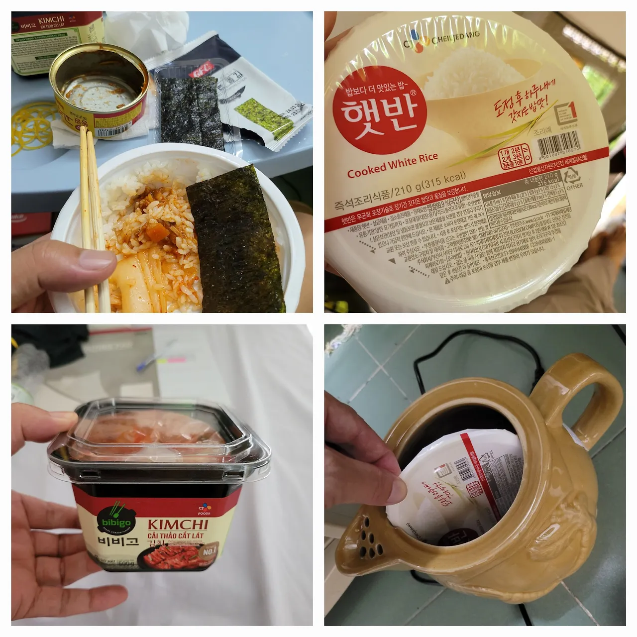 질이 나빠지기 시작하자 가지고 온 음식으로 버티기 시작했다. 조그만 티팟에 햇반을 욱여넣어 데워먹느라 애를 먹었다.