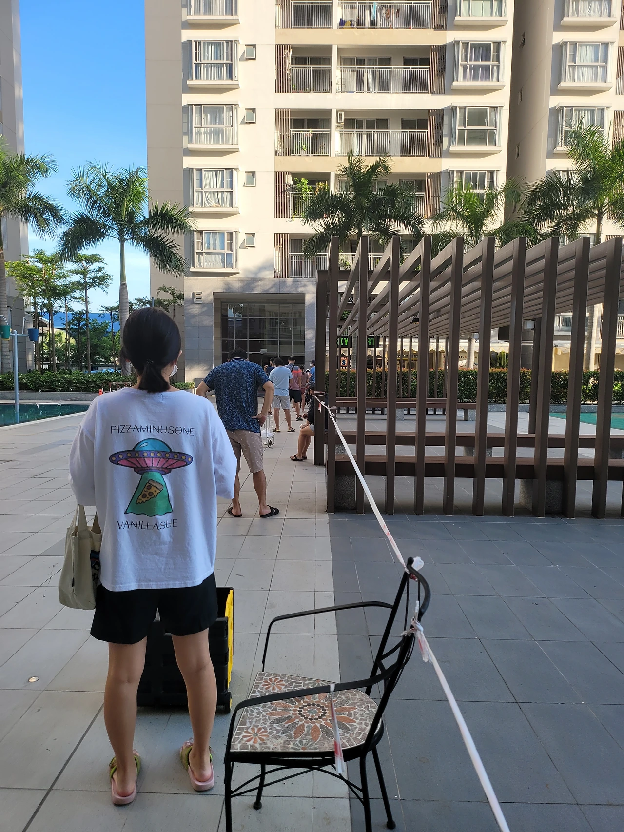 22일 아파트 단지 마트가 마지막으로 문을 연 날, 물건 구매를 위해 긴 줄이 생기고 나도 거기에 서있었다.