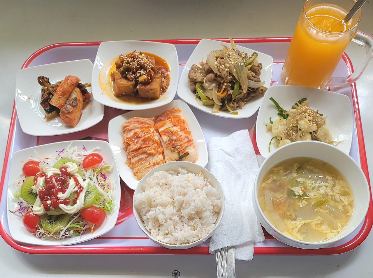 회사 급식실에서 준비해 준 식사. 한식 식사, 너무 그리웠다. `재수가 없다`
