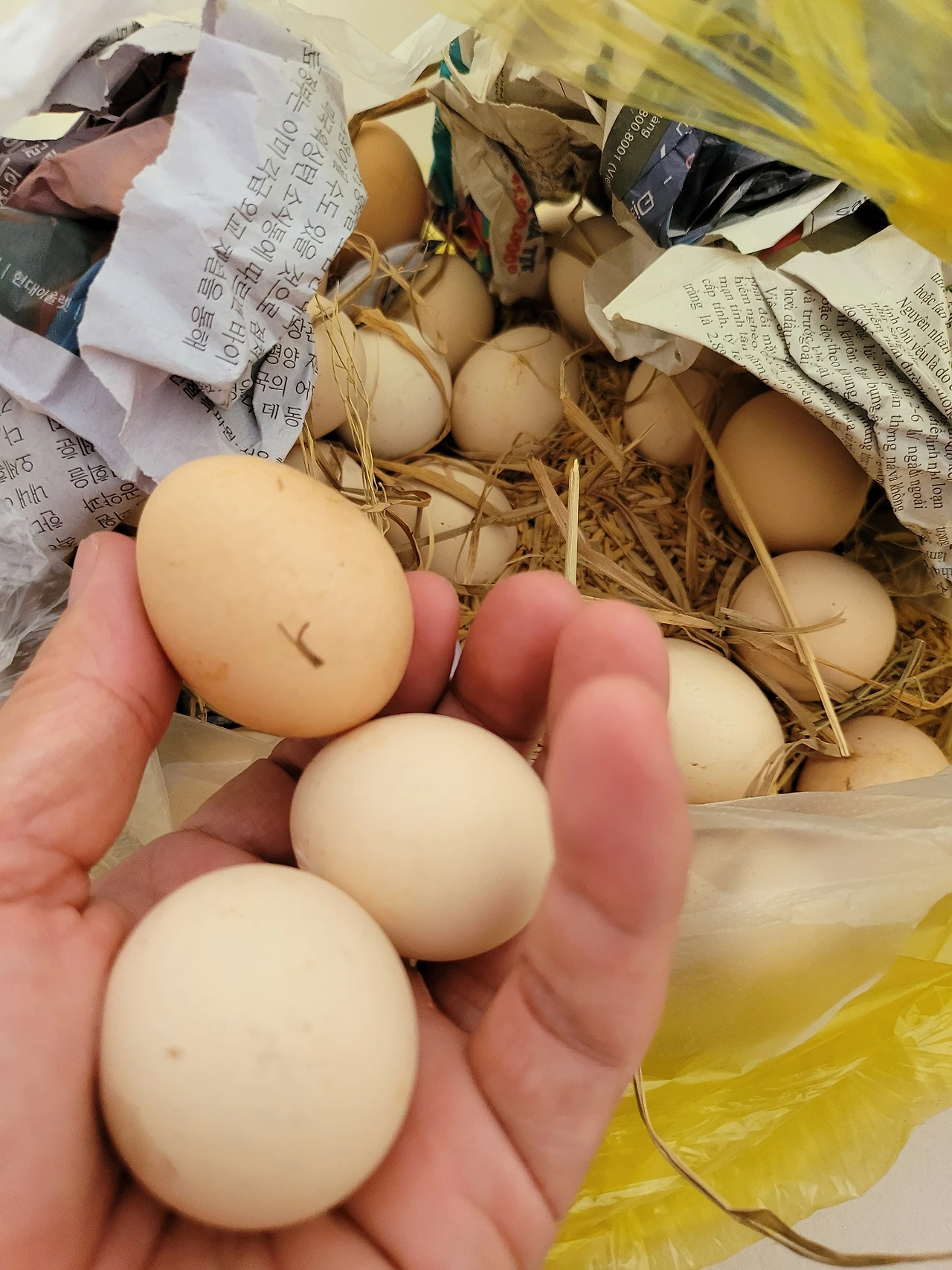 아파트 단지 야채 가게에서 계란이 들어왔다는 정보가 단톡에 뜨면