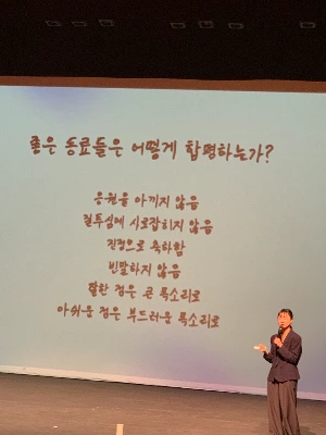 Q&A 시간에 질문을 던져볼까 하는 마음에 입안까지 콩닥거림을 느꼈다. 나는 그 참새 마음이 싫다. 손가락 끝은 온도를 잃어 차갑고 입술은 바짝 마른다. 하지만 결국 손은 들지 못한다.