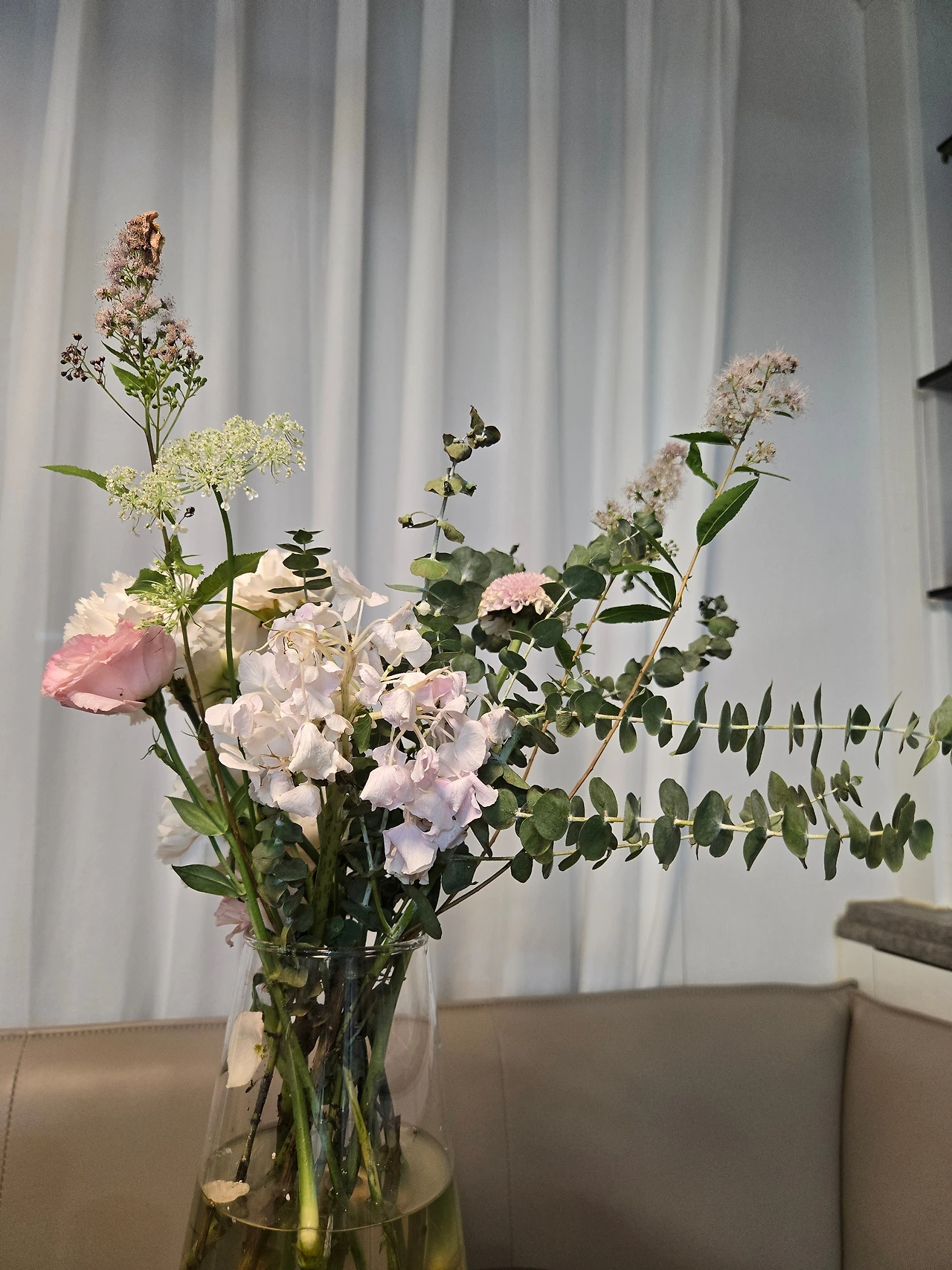 꽃다발의 다른 꽃향은 이미 오래전에 사라졌지만, 유칼립투스는 여전히 묵직하게, 구석구석을 점령한 채 존재감을 드러낸다. 선풍기를 켤 때마다 다시 한 번 그 향이 집안에 퍼진다.