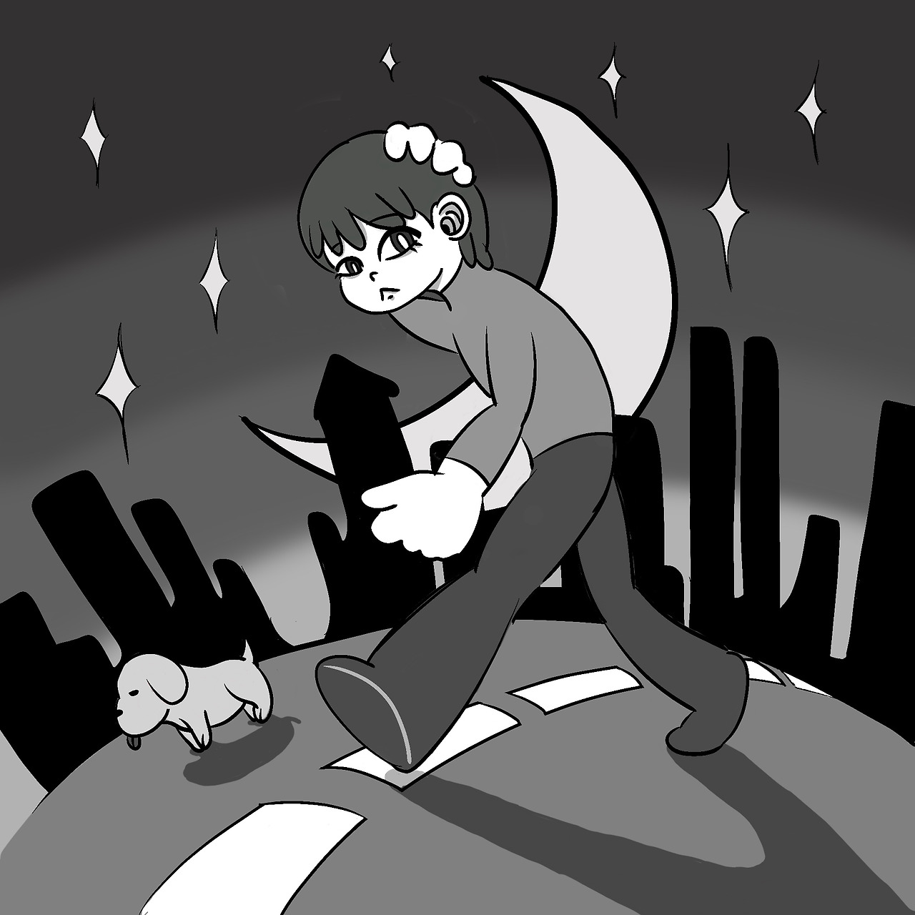 회색 건물, 회색 도로, 회색 고양이, 회색 강아지, 회색 사람들,