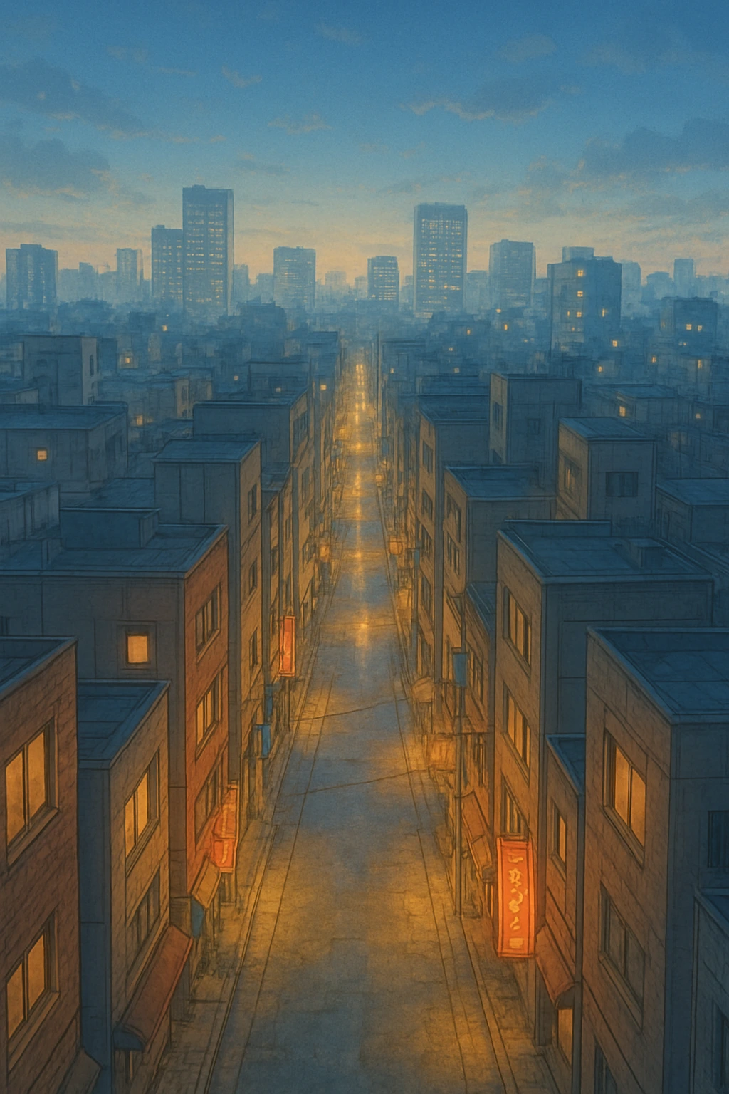어둑어둑하고 보이지 않는 골목의 어귀를 바라보며,