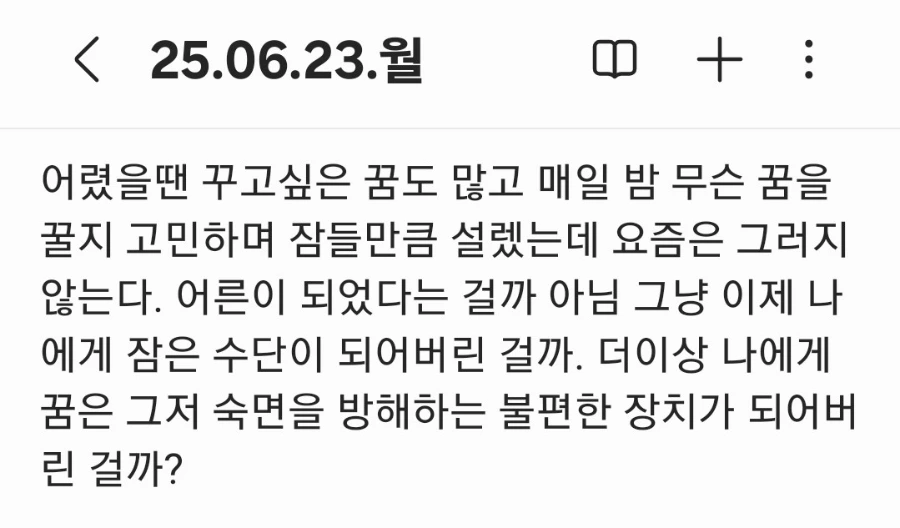 여성의 기대수명이 우리 때에는 87살정도 된다는데 앞으로 60년은 빼곡히 순수한 사람으로 살고싶다. 나이 들어서도 주변 사람의 작은 호의에 의중을 의심하지 않고 얼굴 붉히며 좋아하는 천진난만한 사람이 되고싶다.