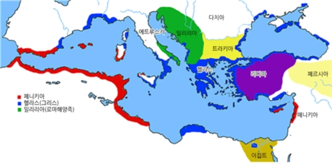 BC 6세기 페니키아와 그리스의 판도