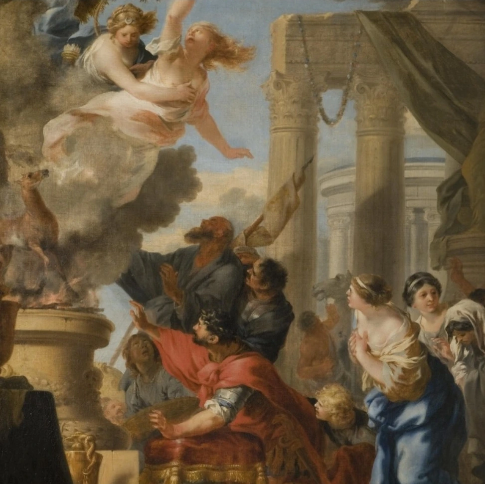 그에게서 돌아온 대답은 아르테미스 여신을 화나게 했다는 것이었다. 이전에 무료함을 달래기 위해 아가멤논이 사냥한 사슴이 공교롭게도 여신이 아끼던 것이었고 이에 대한 해결책은 자신의 딸을 제물로 바치는 것뿐이었다.