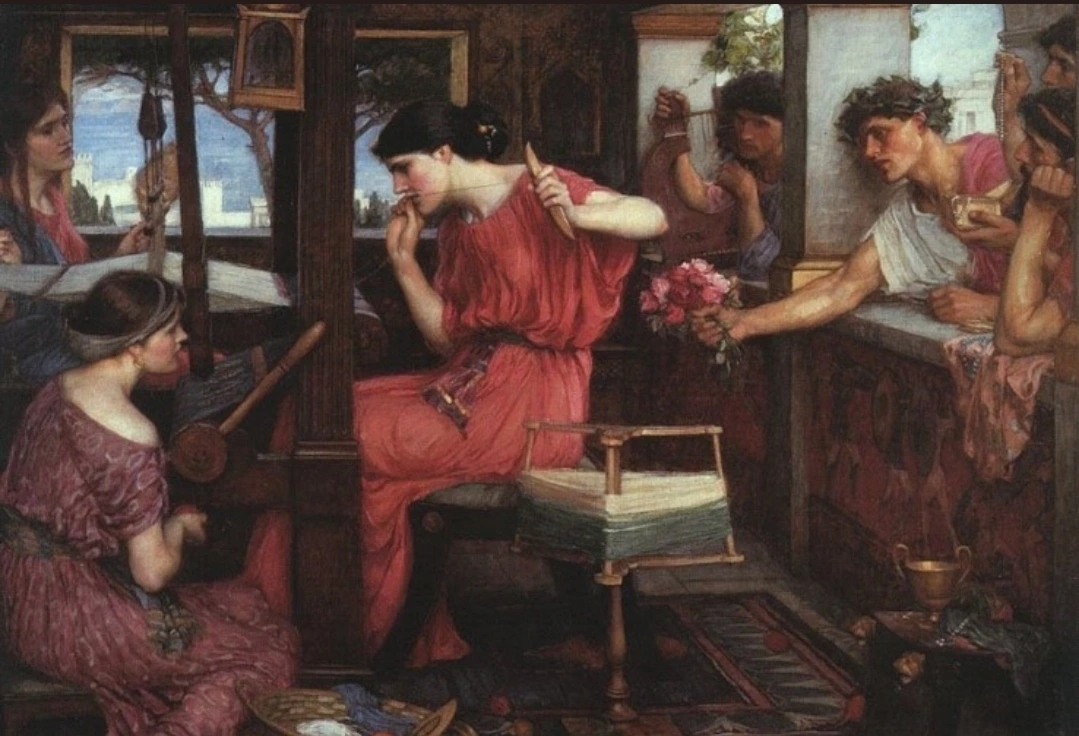 지아비의 부재로 오디세우스의 아내 페넬로페는 많은 구혼자들의 청혼에 시달리게 된다. 거절할수록 난폭해지는 그들의 횡포에, 그녀는 아비의 수의를 완성할 때까지 기다려 달라며 그들을 달래는 꾀를 하나 내게 된다.