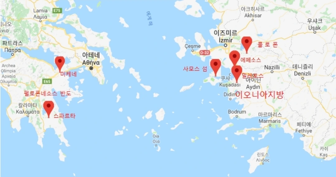그중 한 부류는 이미 페니키아가 그들의 식민도시를 건설하고 있었던 소아시아의 해안 인근의 이오니아 지역으로 이주했고, 나머지 부류는 그리스 본토의 중부로 모여들었는데 이 중심에 아테네가 있었다.
