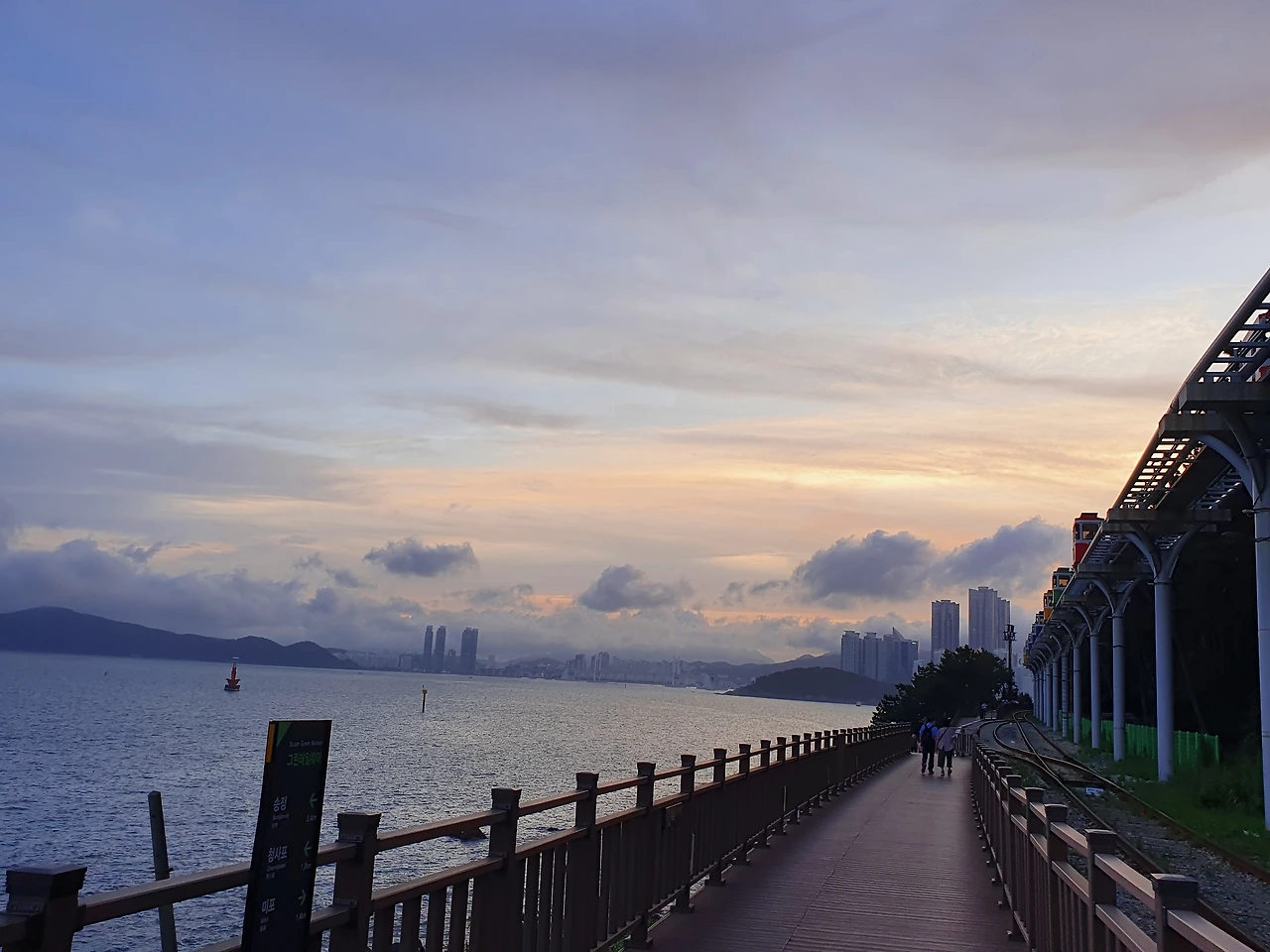 20여분 남짓, 길지 않은 시간이 빨리 지나갈까 봐 나는 차창 밖으로 지나가는 바다와, 서로에게 물들었는지 한층 더 깊어진 하늘을 휴대폰에 담아내느라 여념이 없었다.