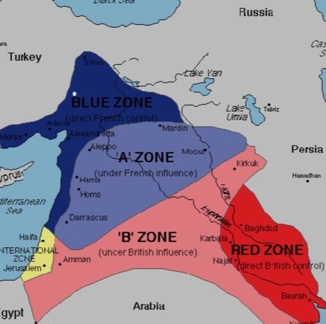 1916년 5월, 영국은 러시아 제국의 동의하에, 당시 식민지 쟁탈전에 있어서 라이벌이었던 프랑스와 비밀리에 협정을 맺게 된다.
