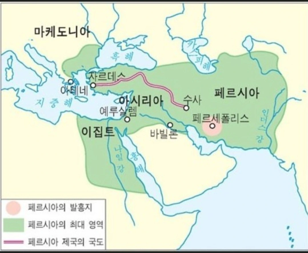 그 후, 다리우스 1세(BC 521~BC 486)와 그의 아들 크세르크세스 1세(BC 486~BC 466)의 통치기에 그 화려한 전성기를 맞이한 페르시아는,서쪽으로는 에게해와 이집트, 동쪽으로는 인더스강에 이르는 광대한 영토를 차지하며제국의 면모를 확고히 다졌다.
