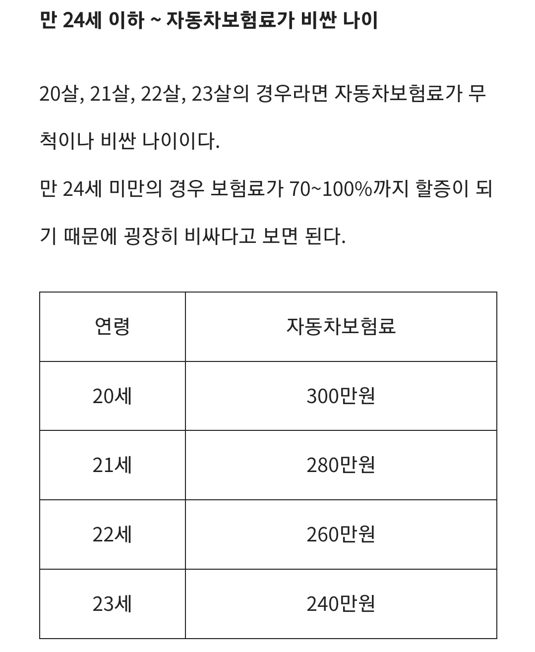 그런데 차 구매에 있어 의외의 복병이있었으니, 바로 차보험료가 그 주범이었다. 이런저런 루트를 통해 알아보니 아직 생일이 지나지 않아 만 24세였던 아들의 보험료가 생각보다 상당히 높았기 때문이다.