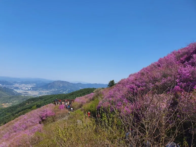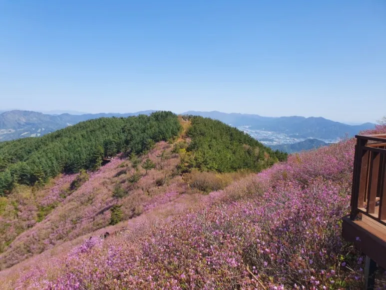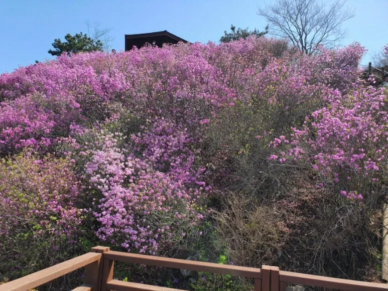 그 일대를 뒤덮고 있는 진달래 물결을 보자마자 우린 언제 힘들었냐는 듯, 곳곳에 설치되어 있는 전망대를 휘젓고 다니며 사진을 찍어대느라 여념이 없었다.