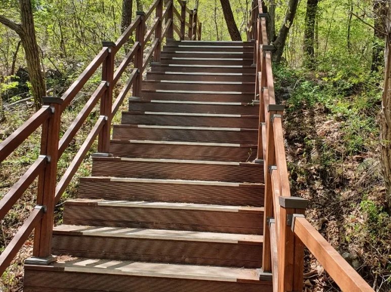 천주산 정상까지 0.4km 남았다는 푯말과 눈이 마주치고 말았다. 그리고 눈앞에 맞닥뜨린 나무계단...
