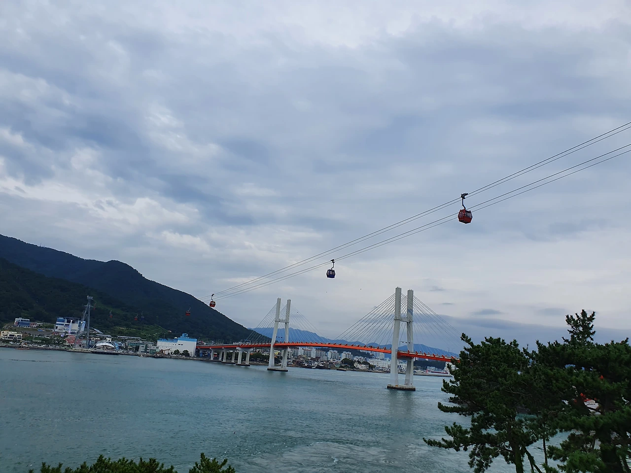 파란색 케이블카를 타고 출발한 순간, 우리 아래로 펼쳐진 남해바다의 장관에 잠시 움찔했던 공포심이 한순간에 날아가버렸다.