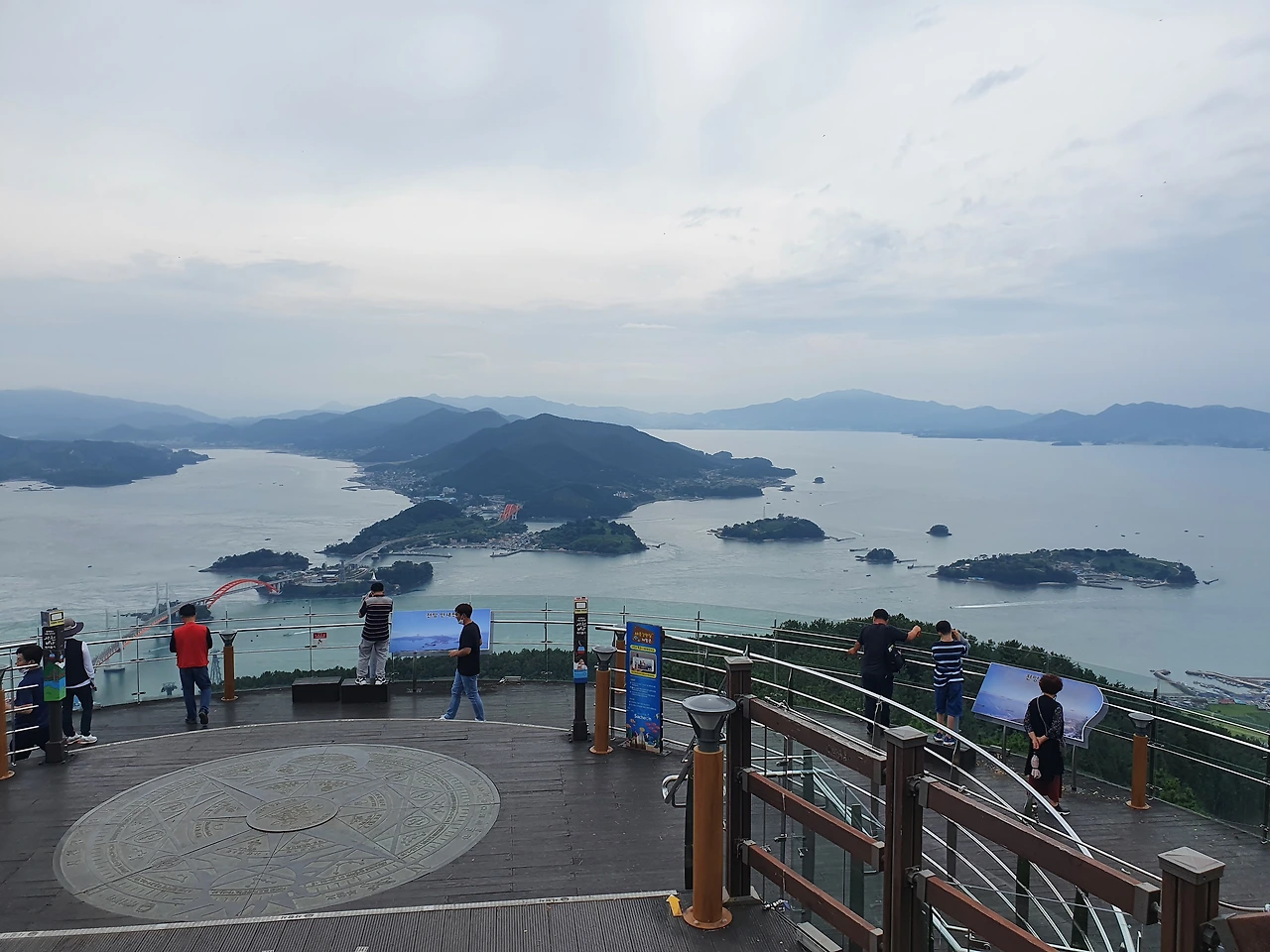 각산 정류장 위 전망대에서 바라본 풍경도 장엄했지만 계단을 조금 더 올라가 도착한 각산 전망대에선 사천 시내와 남해 앞바다, 그 너머 한려해상을 수놓고 있는 많은 섬들도 모두 한눈에 들어왔다. 단 돈 몇만 원으로 이렇게 쉽게 이 아름다운 자연을 눈에 담아도 되는 건지 경이로움 뒤로 왠지 미안함까지 느껴졌다.