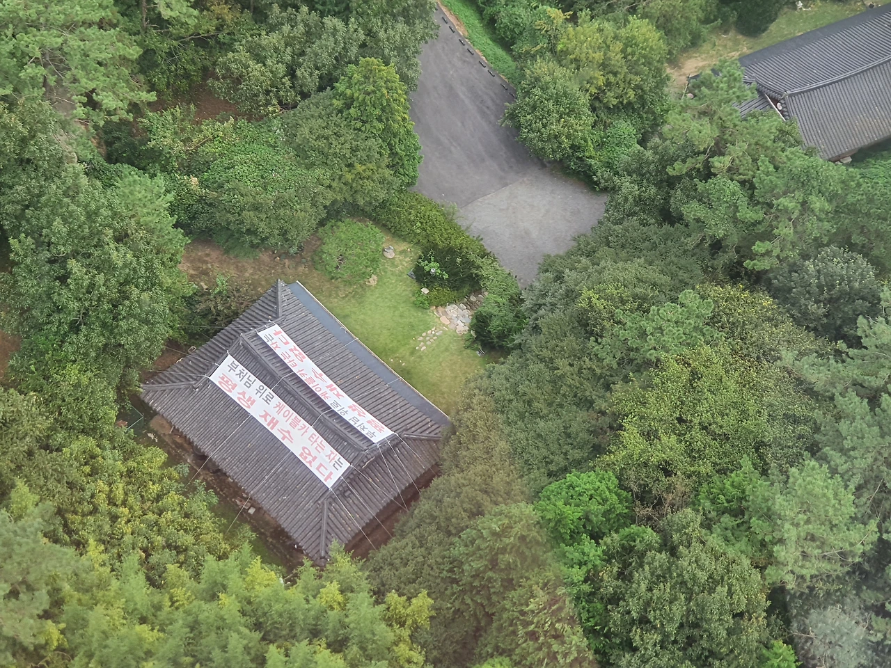 출발지인 대방 정류소로 돌아가는 길, 고소 공포증이 있다며 긴장한 남편의 발아래로 어떤 글귀가 적힌 사찰 지붕이 눈에 띄었다.