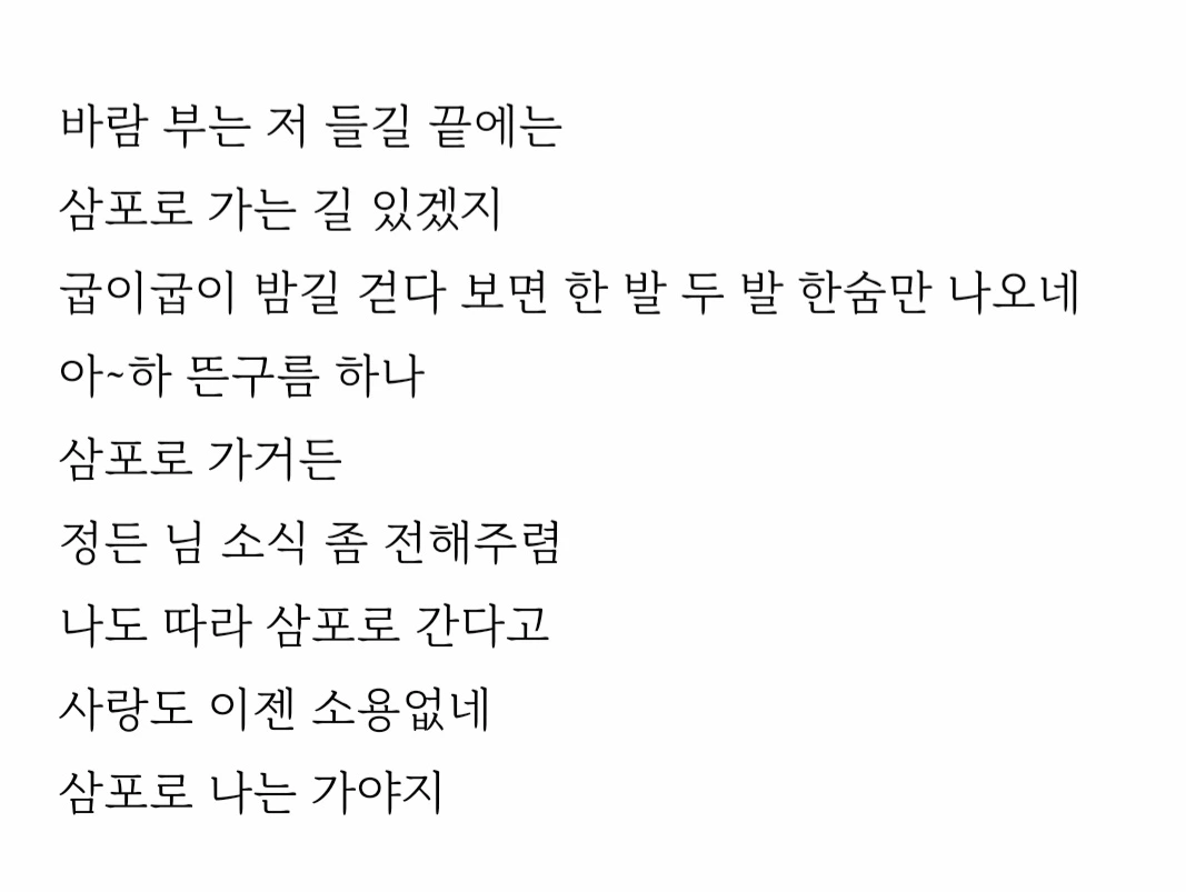 하지만 나에게 '삼포'라는 이름이 더 친숙하게 느껴진 건 아무래도 황석영의 동명 소설, '삼포 가는 길' 때문이었을것이다.