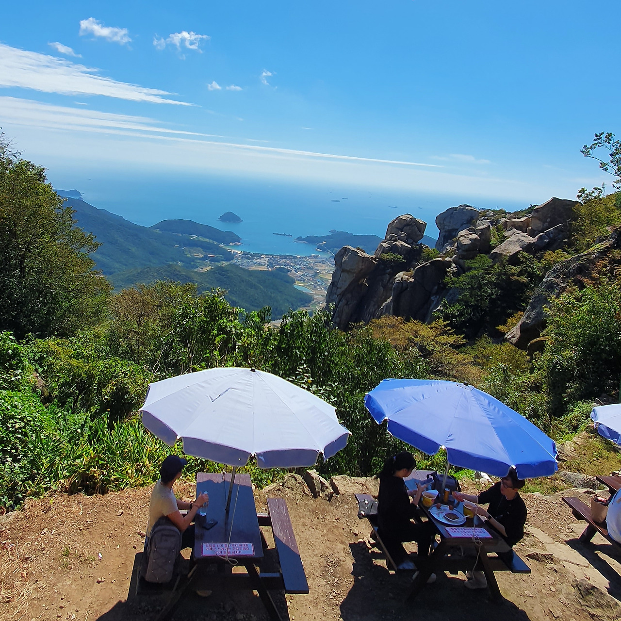 애초에 출발 전부터 간식으로 낙점했던, 보리암만큼 유명한 금산산장의 라면을 먹을 땐 무슨 천상의 음식이라도 마주한 사람처럼 넋이 나간 듯,라면을 먹는 건지 경치를 먹는 건지 그 맛과 경치에 취해 두 눈과 입도 구분하지 못한 채 마구 흡입하기에 바빴다.