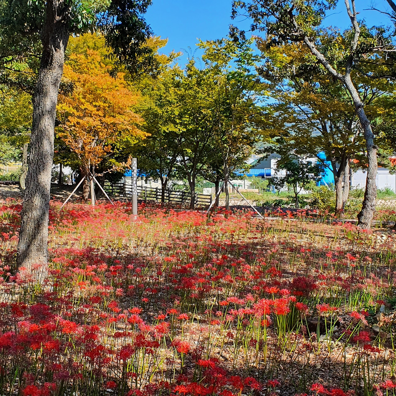 그러나 직접 찾은 앵강다숲의 꽃무릇 군락은 일찍이 매스컴에서 보았던 화려하고 생동감 넘치는 모습과는 사뭇 달랐다. 화면에서 두 눈을 가득 채우듯 만개한 꽃을 본 건 1~2주 상간이었지만 대부분의 꽃들은 그 새 시들어 그 빛이 바랬고 현장에서 느낄 수 있는 생생함이란 그 어디에서도 찾아볼 수 없었다. 그리고 평일 오후라 그런지 캠핑장으로 쓰이고 있는 바다 주변은 인적이드물어 황량하기까지 했다.