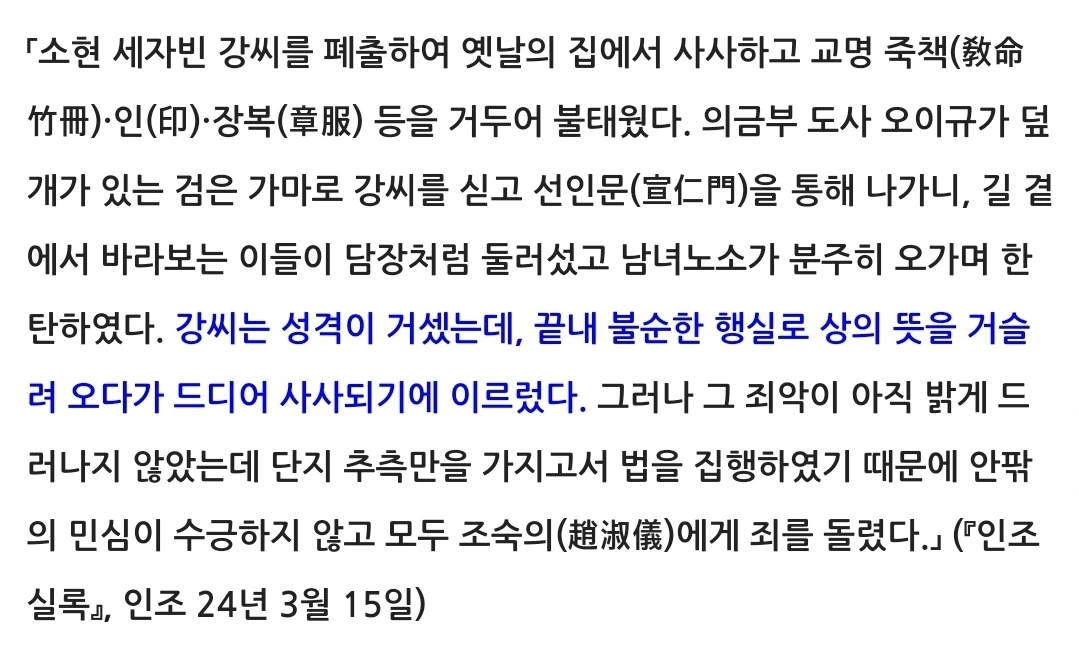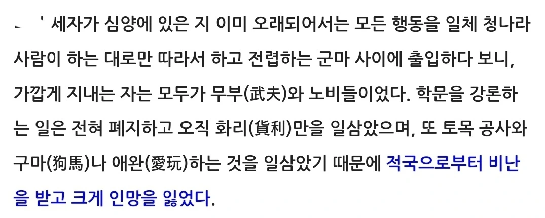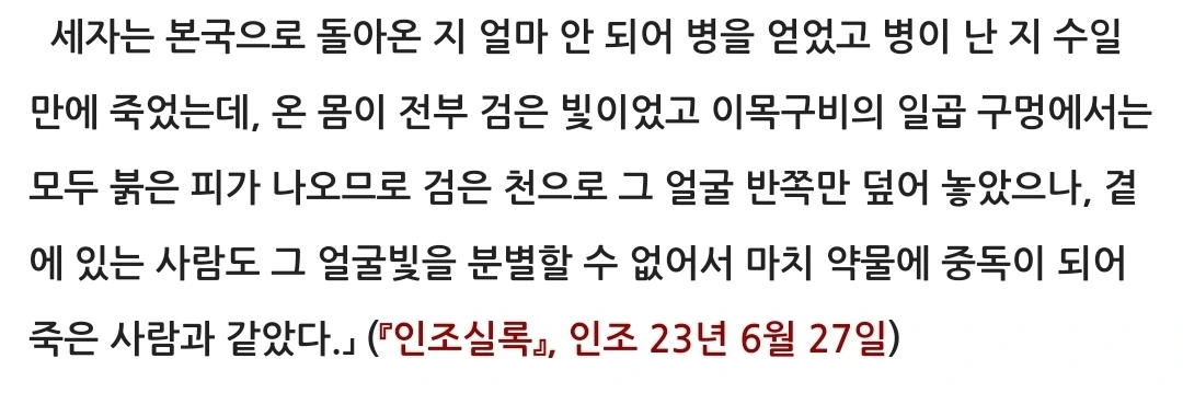 세자에 대한 불편한 심리는 인조실록 곳곳에 나타나기도 한다.
