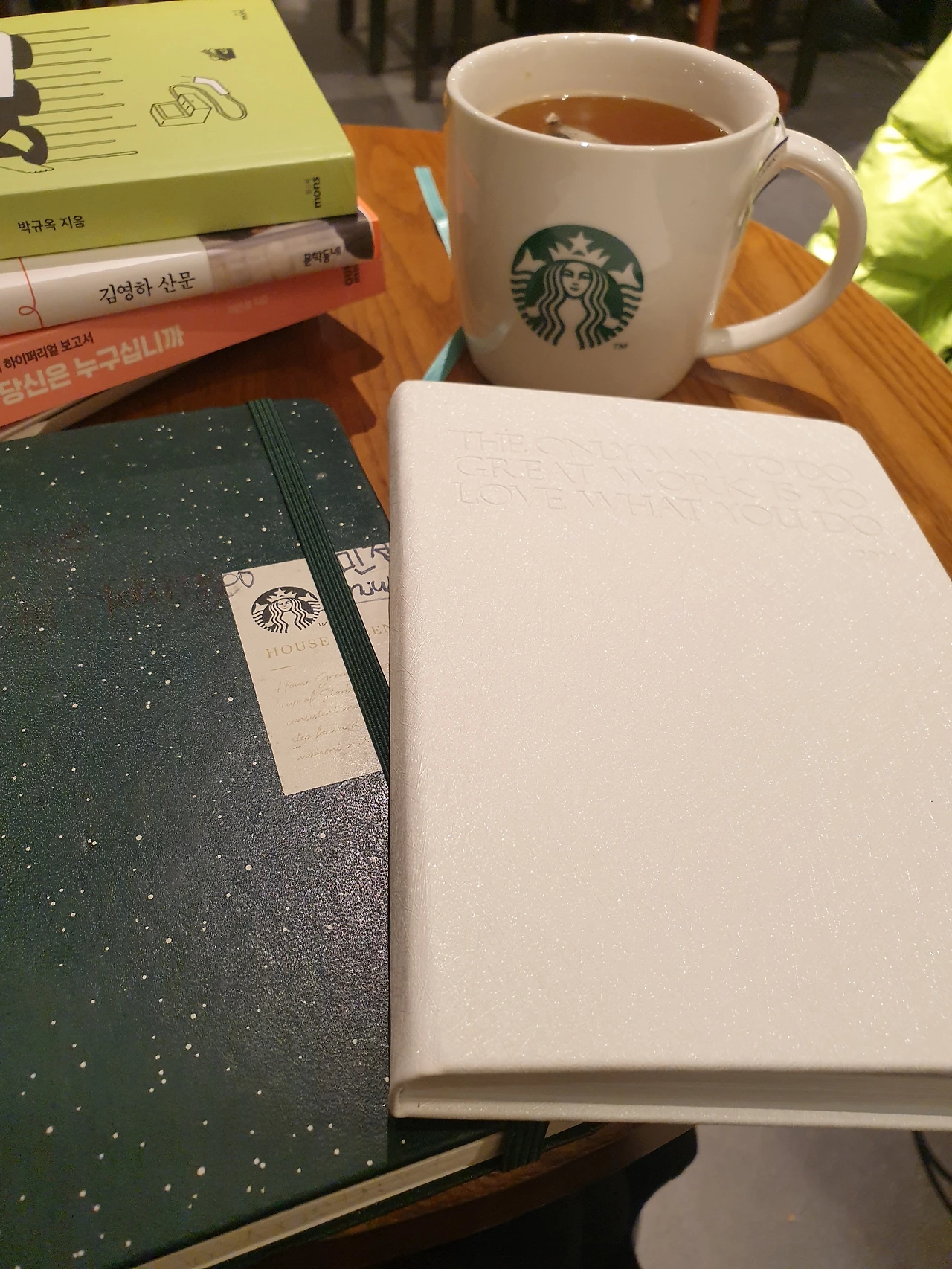 이름도 어렵구나, 토피넛라떼를 제외하곤 내 취향에서 벗어났다. 그럼에도 다이어리를 손에 넣어야 하기에 하나씩 마셔야겠지. 이렇게 철저히 소비자의 삶에 순응하며 살아가고 있던 어느 날, 한참이나 빠져있는 브런치 글쓰기 동지들을 이끌어주시는 이은경 선생님의 다이어리 판매, 이미 마음은 그쪽으로 기울었다.