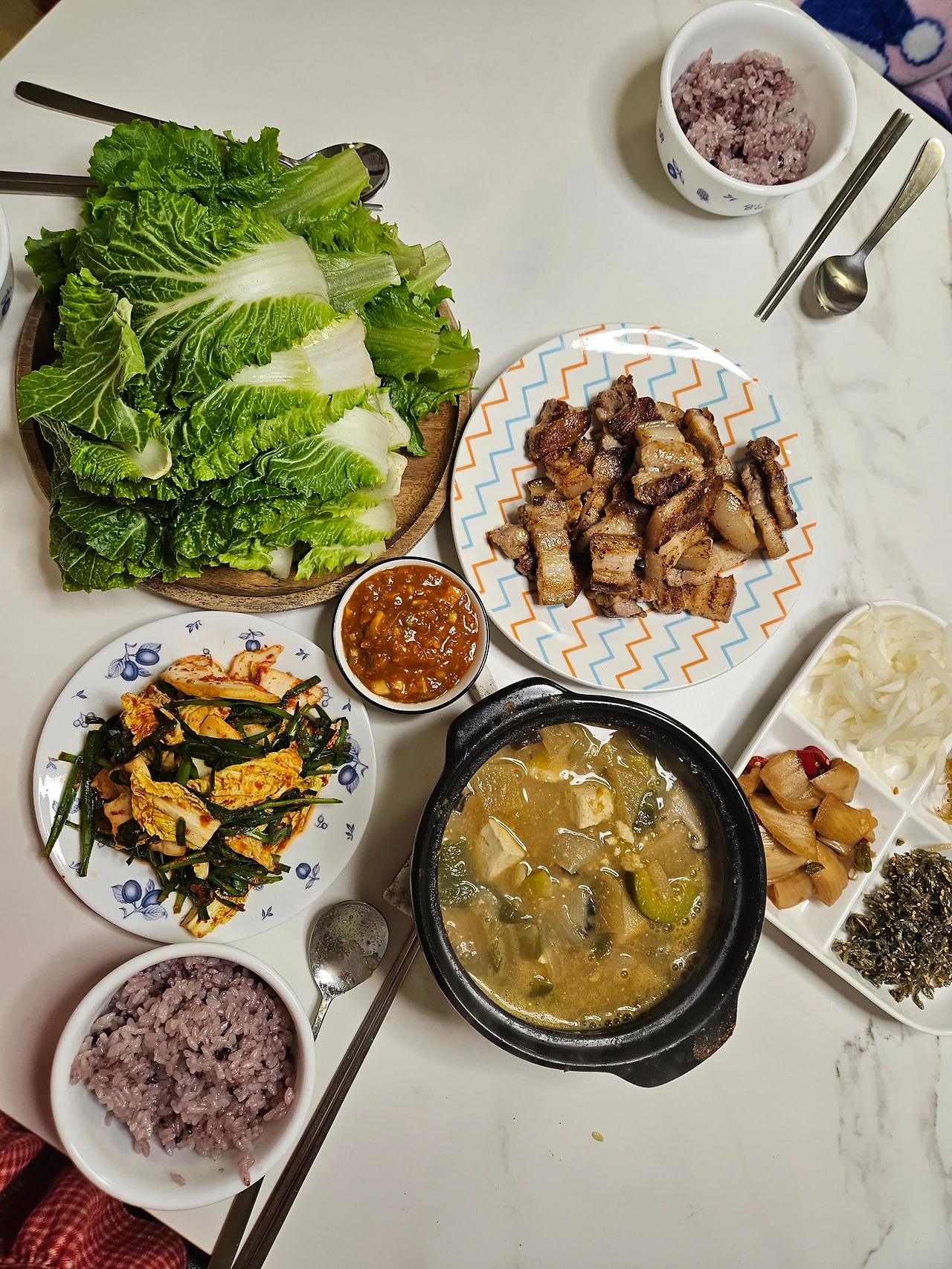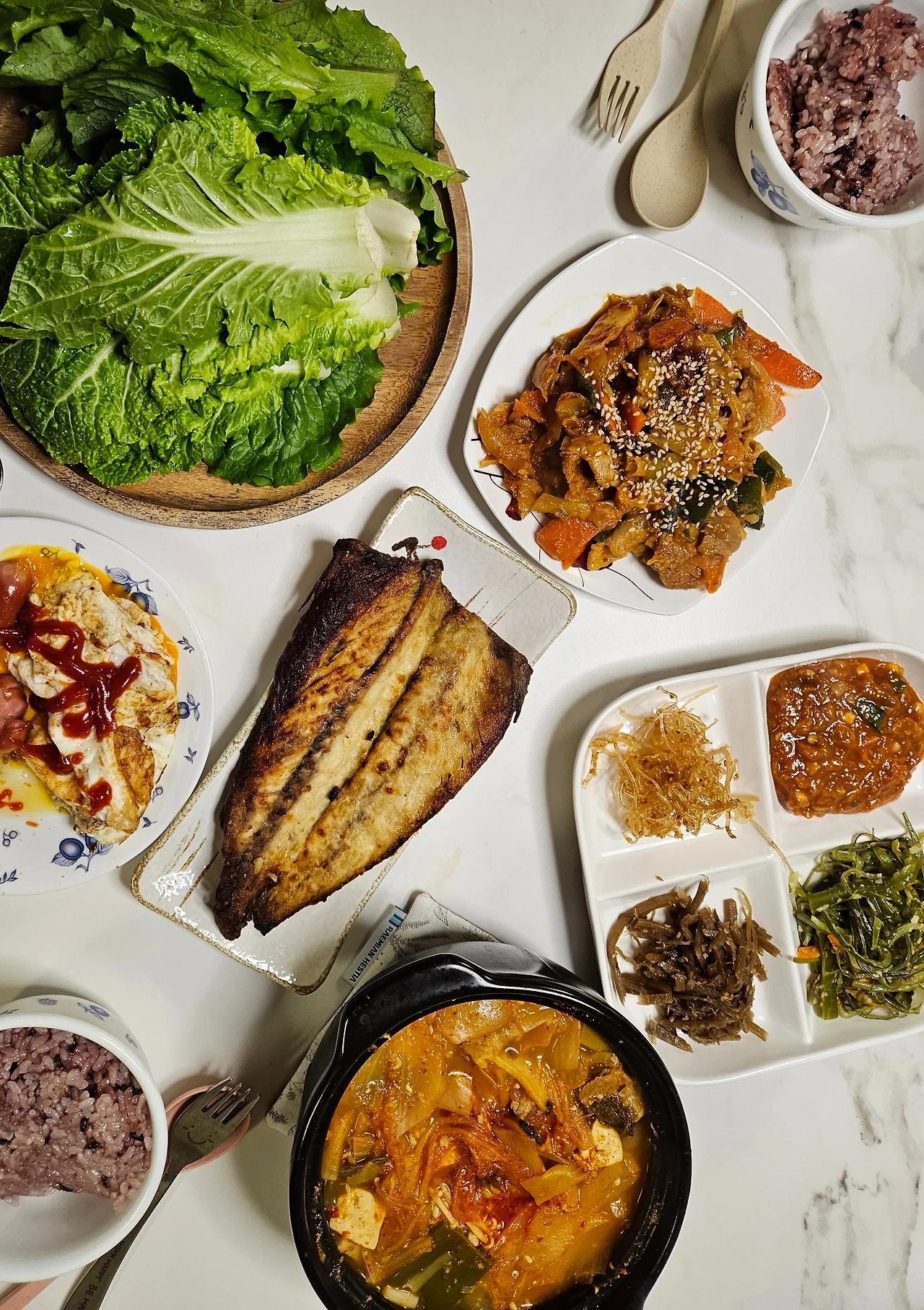 이렇게 주 2~3회 먹으니 주 10만 원은 우습더라고요. 우선 아빠랑 함께하는 주말 외식은 살려두고요(사실은 이게 더 큰돈 나가는데 ㅎㅎ). 아이랑 함께하는 외식과 간식비만 줄여봅니다. 대략 40만 원쯤 될 것 같은데 집밥 식비도 지출해야 하니 30만 원으로 잡아봅니다. 야채위주 집밥, 쌀도 곤약쌀로 밥 짓고요. 100프로 곤약쌀은 맛이 너무 없어서 현미 50, 곤약쌀 20, 백미 20, 흑미 5, 기장 5로 정착했어요. 이렇게 2주 먹으니 애기와 저 모두 2킬로씩 감량했습니다.