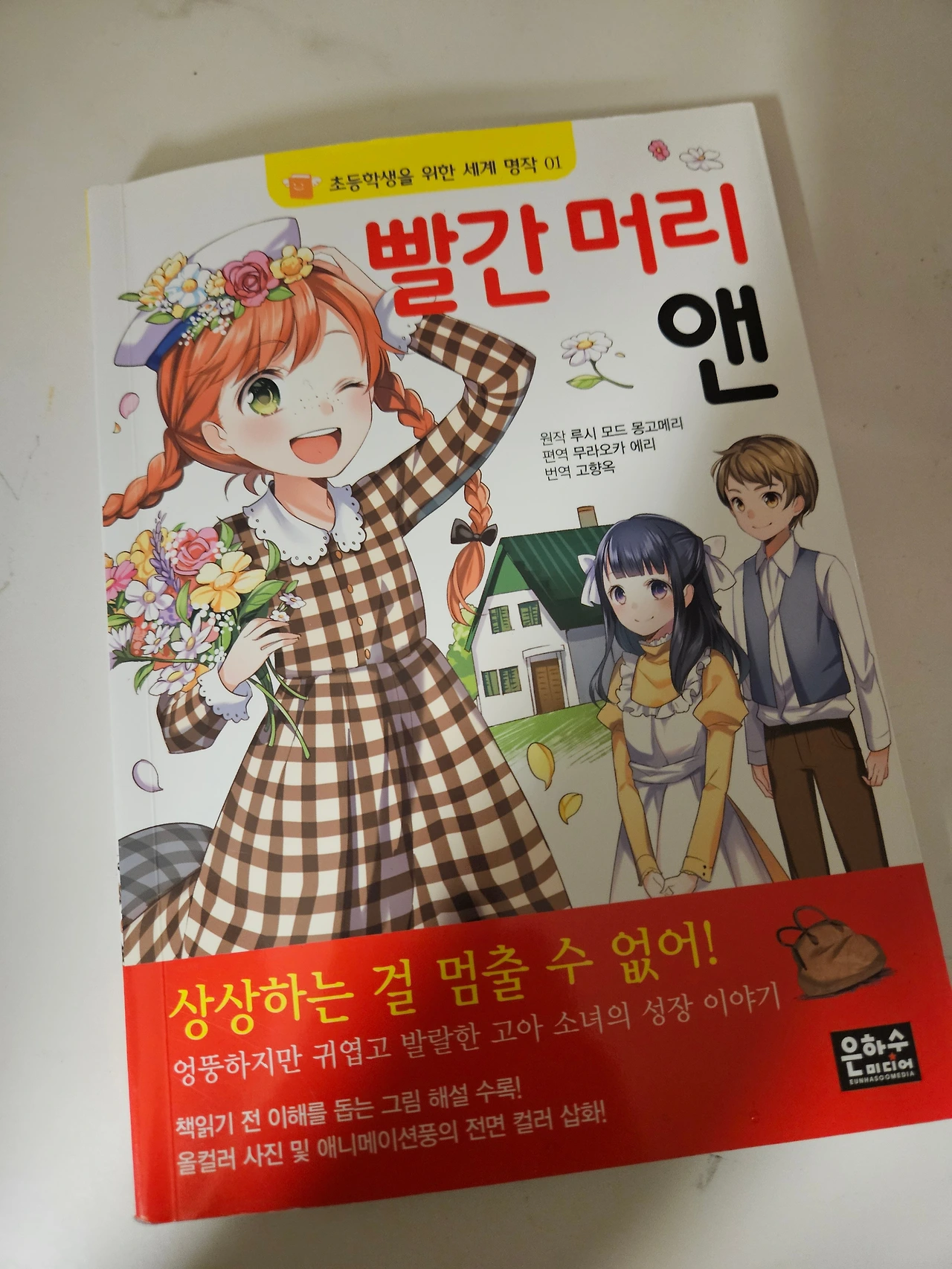 초3 우리 집 쥬부장님(우리 따님^^)이 요즘 만화책만 읽길래 빨간 머리 앤 책을 읽으라고 사줬습니다. 줄글 책인데 삽화가 예뻐서인지 좋아하면서 잘 읽었어요. 집에서 4일 만에 다 읽더니 학교에 가서 쉬는 시간에 또 읽었다고 해요. 재미있어서 재독하고 친구들한테도 빌려주고, 담임선생님께도 빌려드렸다고 합니다. 담임선생님께서 "너 빨간 머리 앤 좋아하는구나, 선생님이랑 똑같네"라고 말씀해 주셔서 우리 쥬부장님 더욱 빨간 머리 앤에 빠졌습니다(담임선생님 너무 좋으시죠?^^).