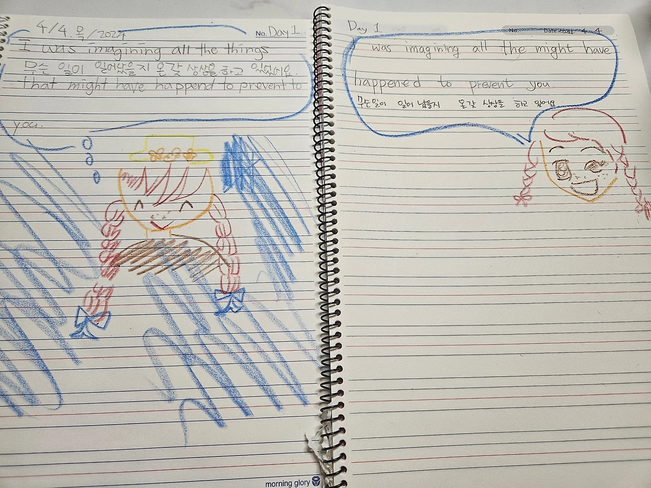 아무튼 그렇게 일주일 만에 27부작 끝내고요. 아이랑 일주일 내내 빨간 머리 앤 얘기만 하다가 이 기회를 놓칠 수 없어 영어 필사를 시작했습니다.