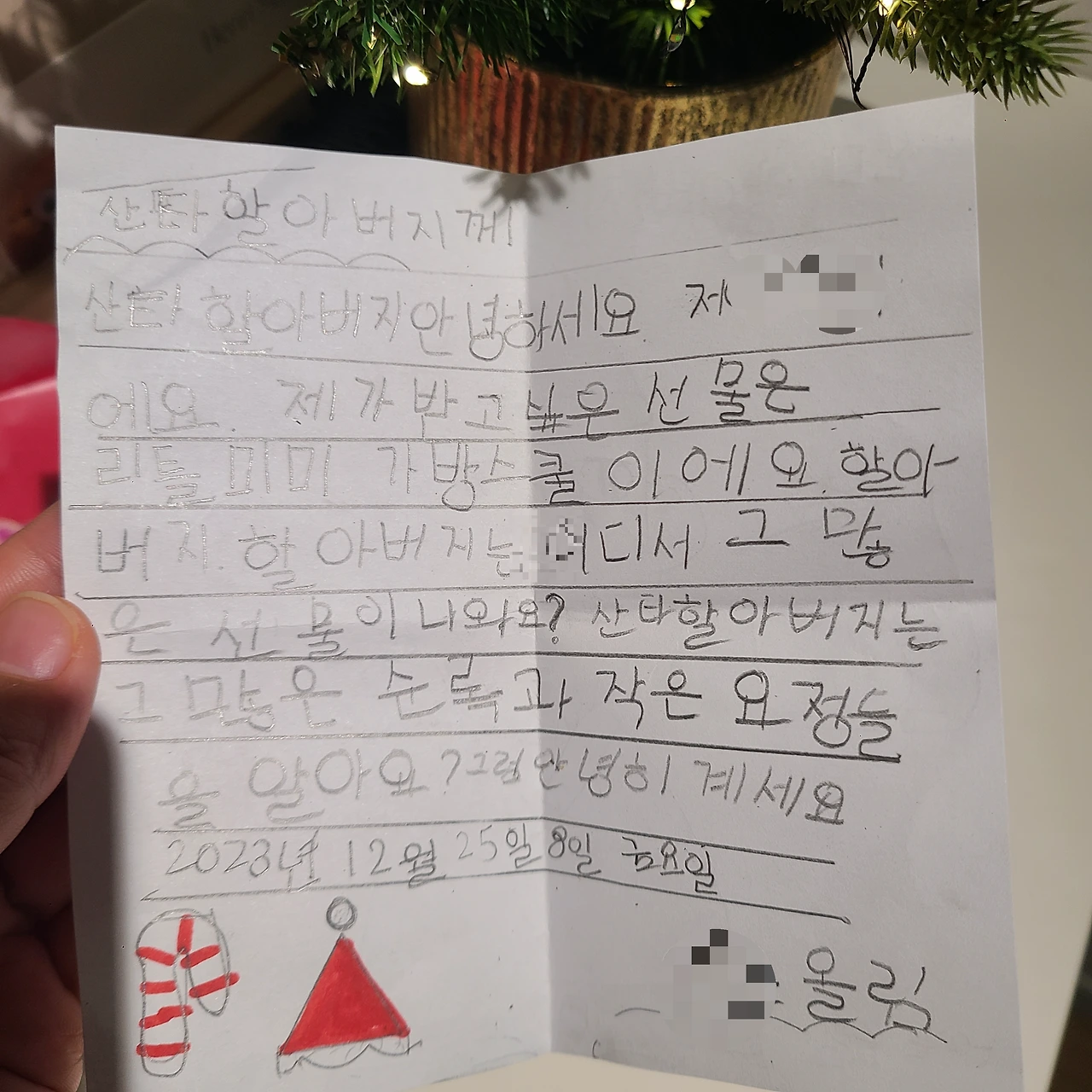 그건 친구가 산타에게 선물을 못 받게 되어서