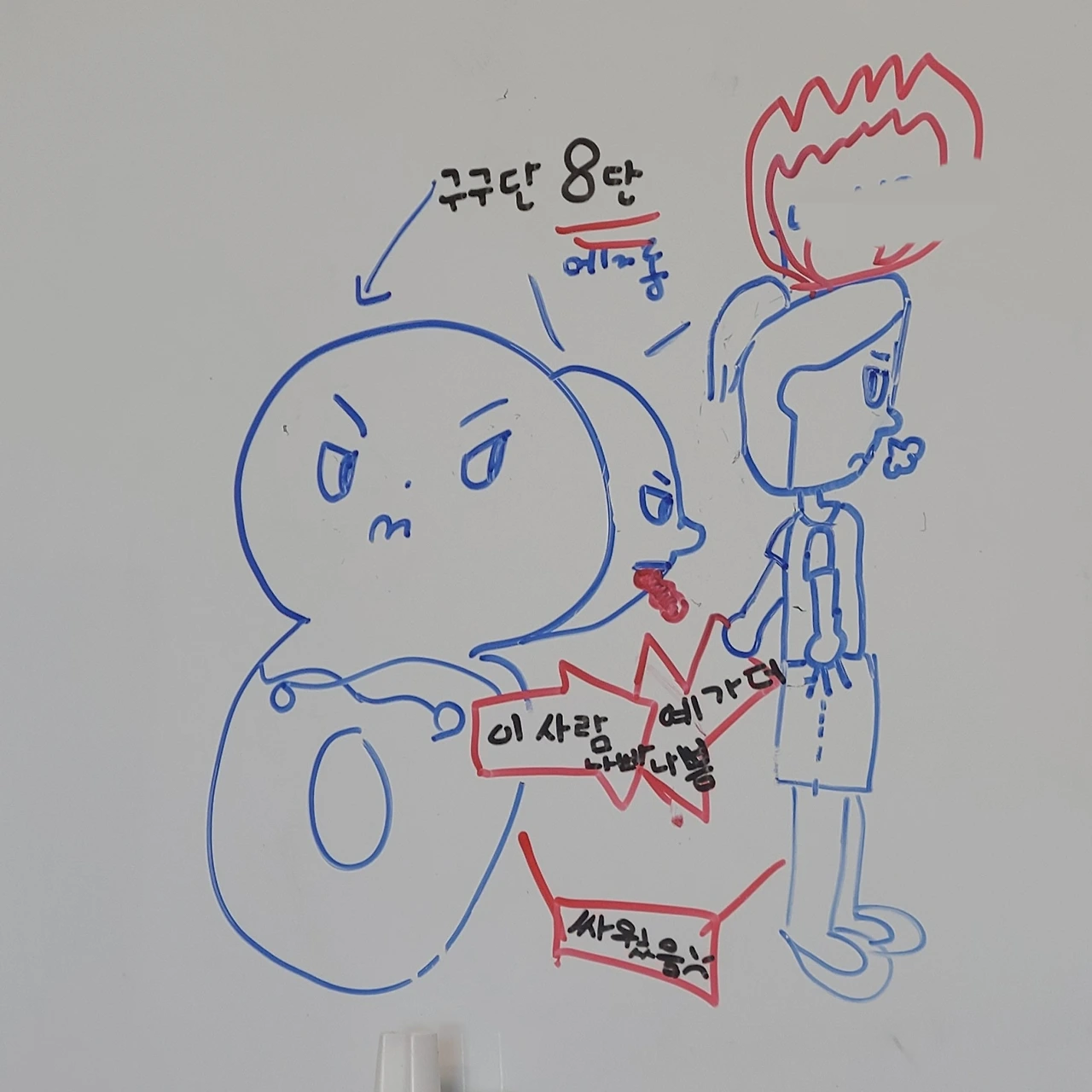8단과 아이가 신경전을 벌이고 있다.