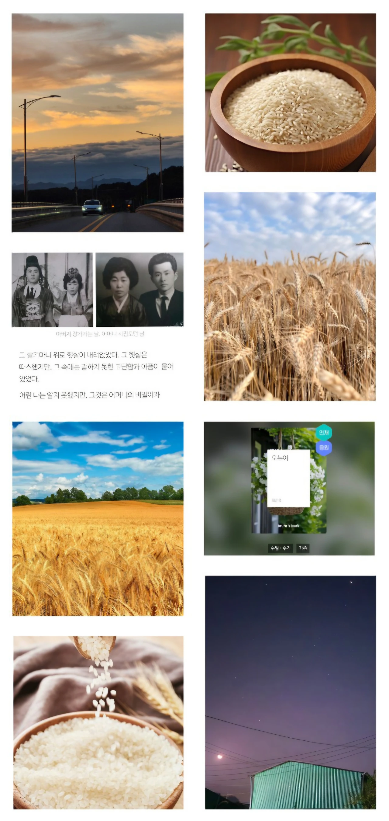 영양제를 맞고 계신 아버지께 시골집에서 수확한 밤과 수수, 벼, 보리 사진을 보여드리며 근황을 전했다.