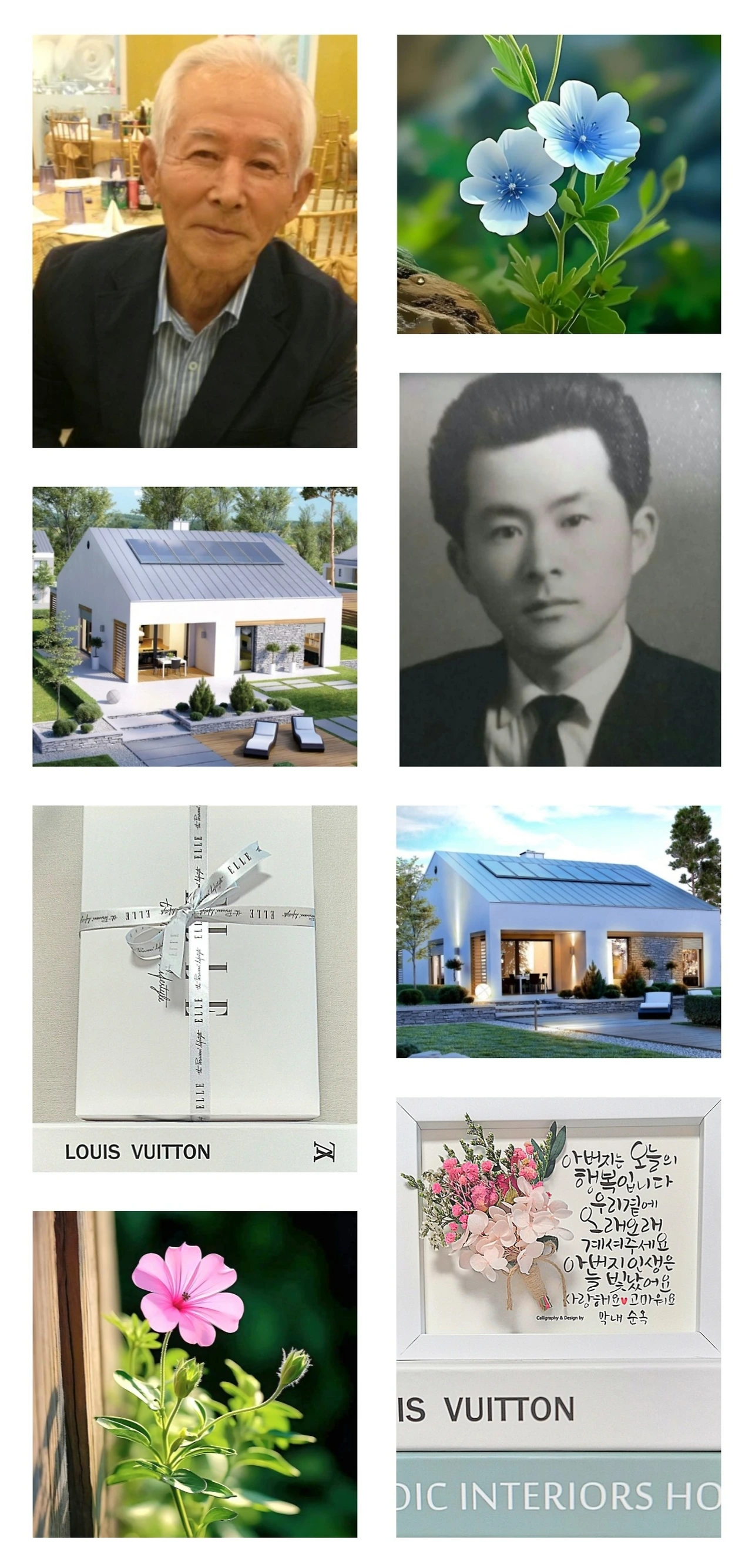 “아버지, 이번 추석에는 선물로 부드러운 순면 위아래 옷을 사드릴게요. 그리고 새 차로 모시고 고향집에도 다녀오자고 약속드릴게요.”