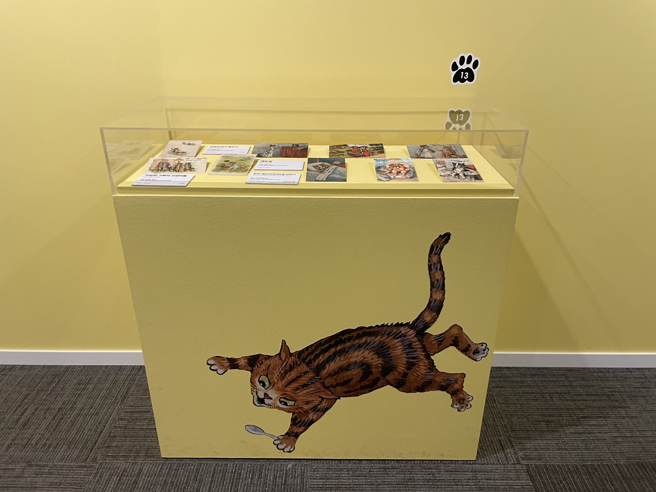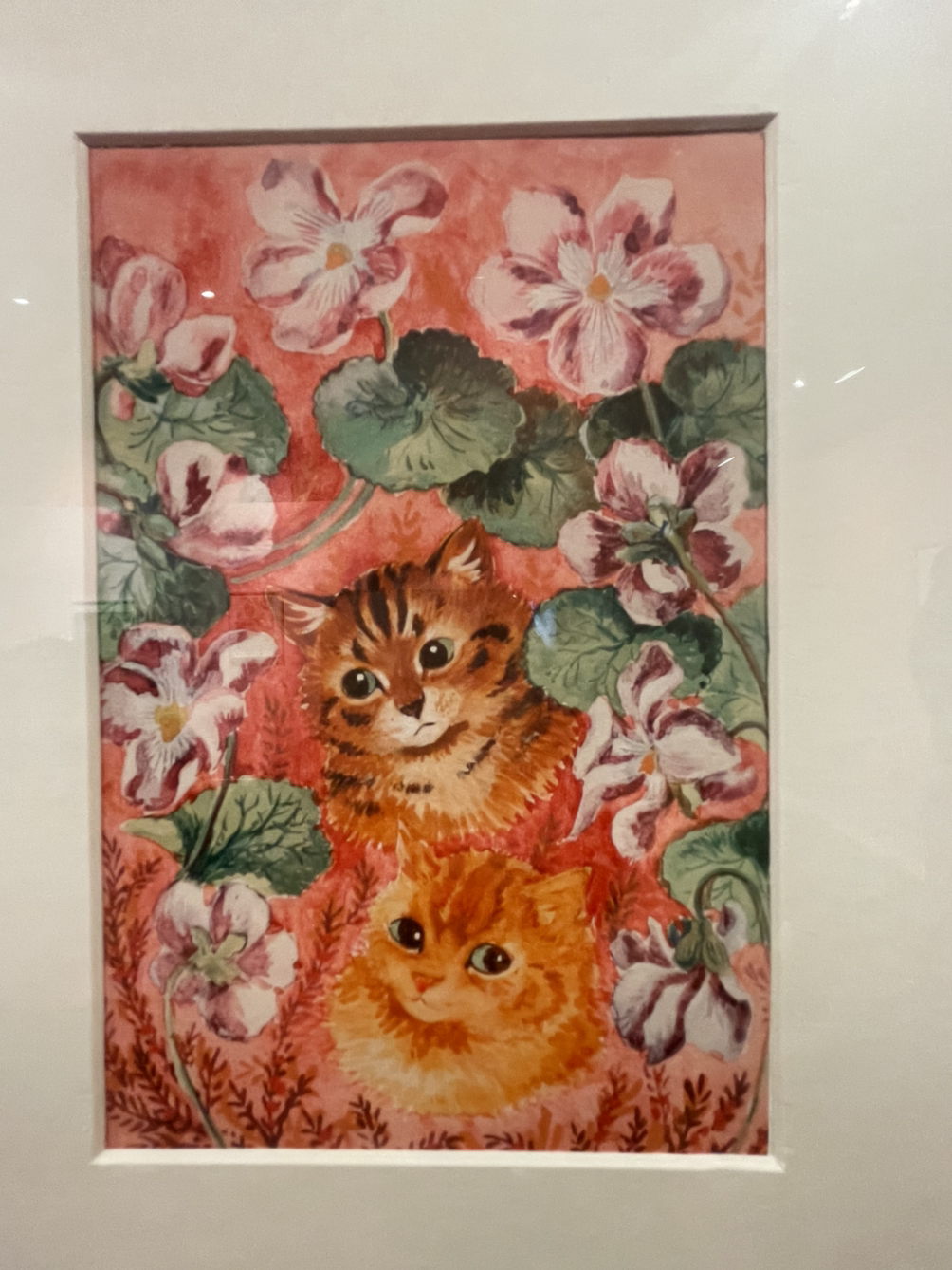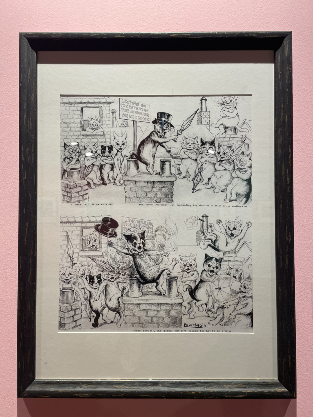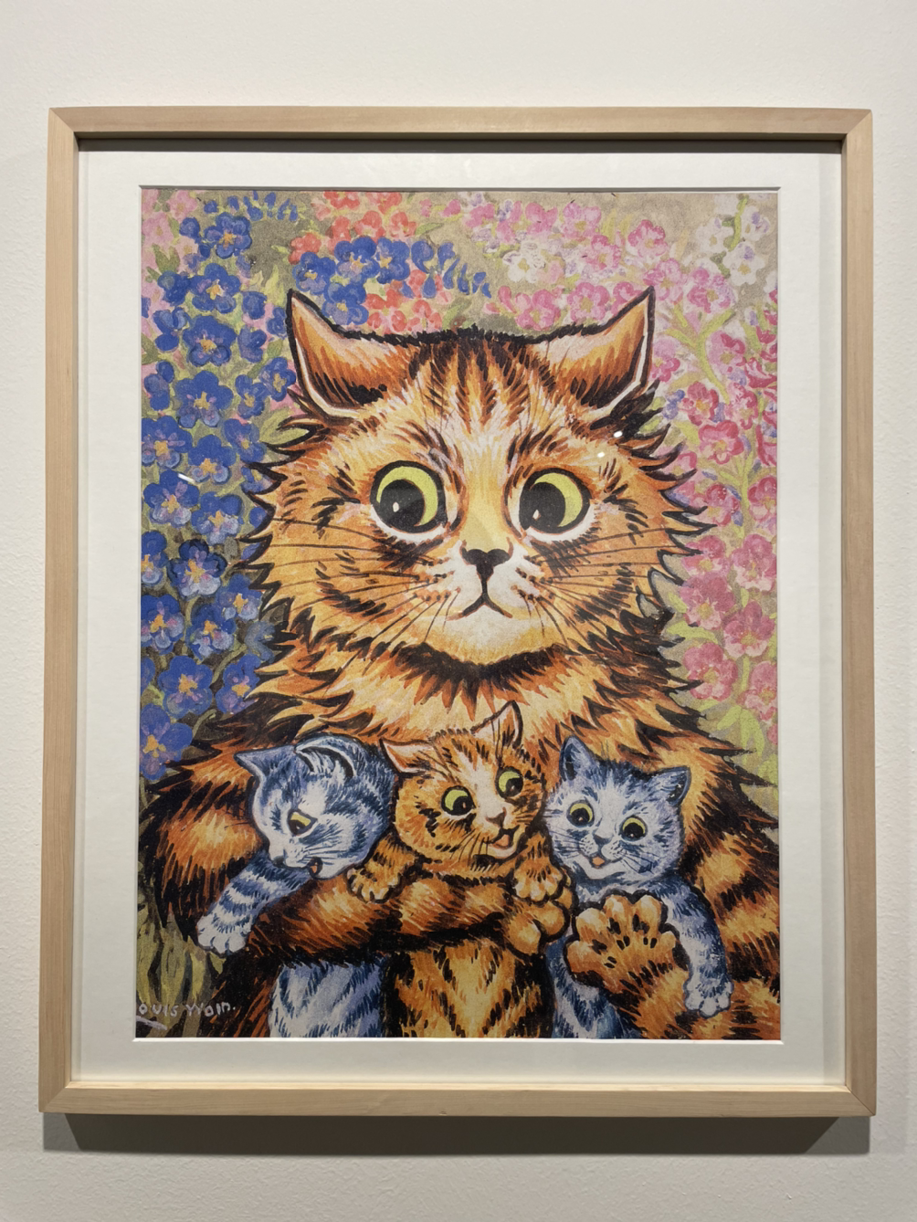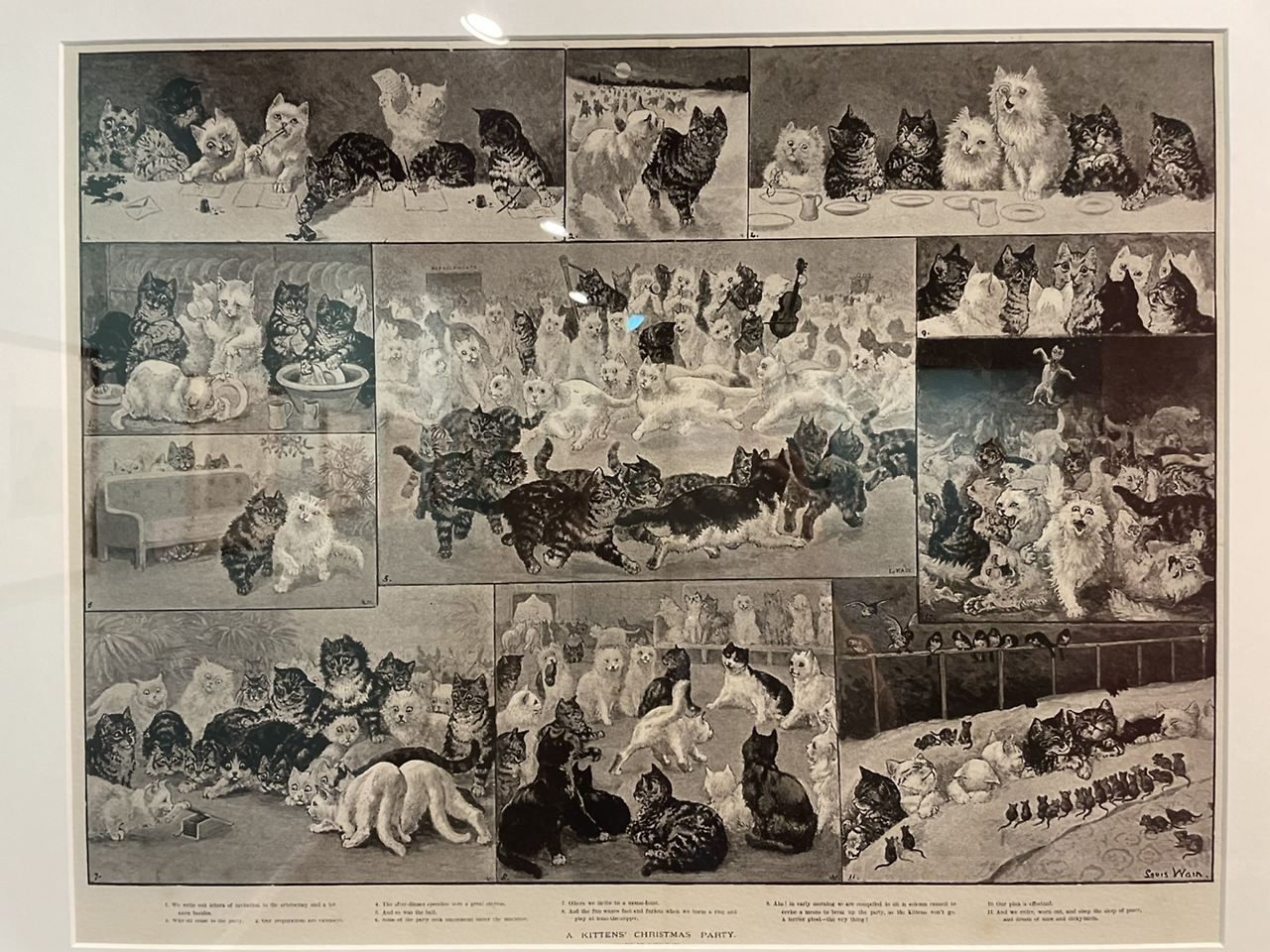이제 본격적으로 그림들을 마주한 시간. 아.. 귀엽고 이쁘고 유니크한 고양이이 와글와글~ 일러스트레이터로 활약했던 루이스 웨인의 초기작은 드로잉이나 그림책 삽화가 많은 듯 했고, 이외의 작품 상당수는 컬러 석판화였다. 회화가 아니라 판화를 색을 입혀 찍어낸 것.