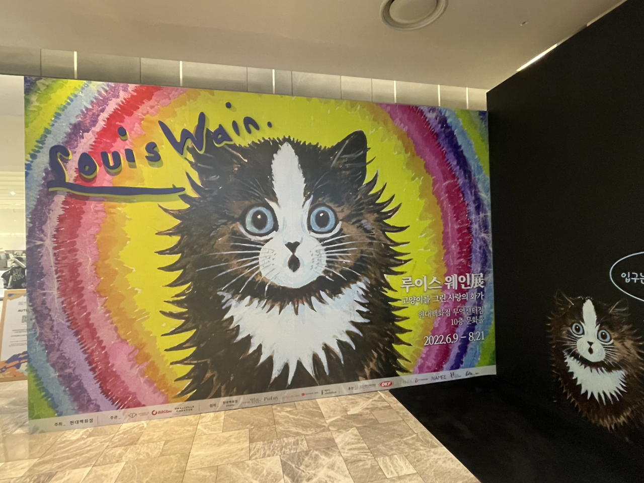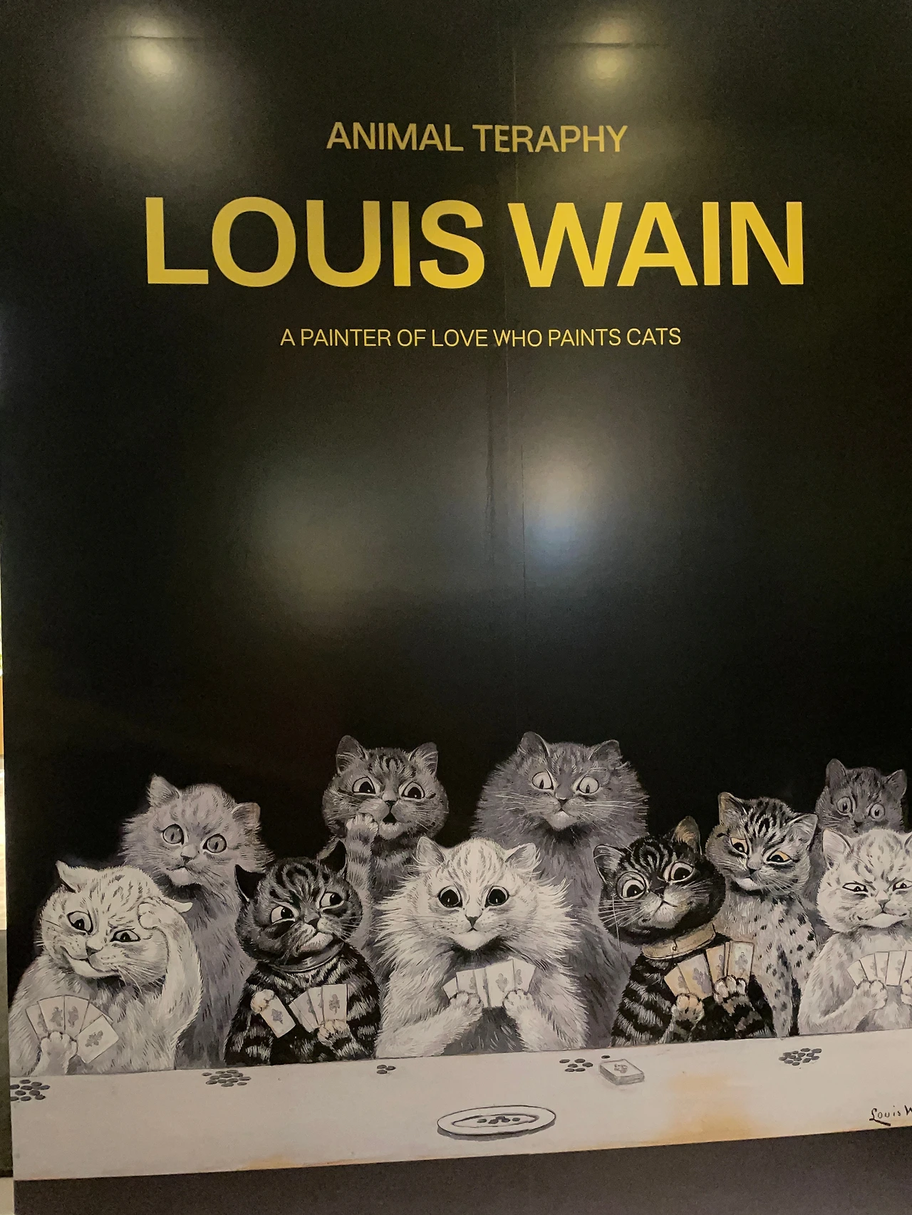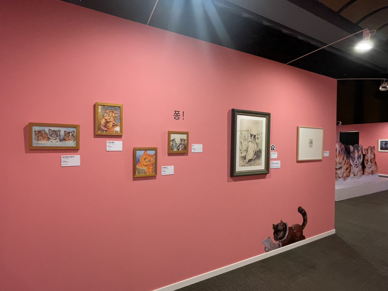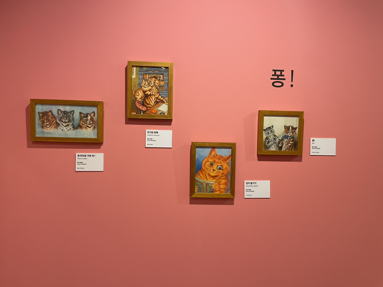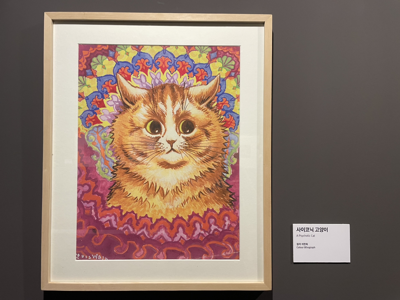 이 전시에는 루이스 웨인의 일생을 영상으로 제작해 계속 보여주는데 놓쳤던 영화에 대한 회환처럼 두번이나 봤다. 루이스 웨인이라는 화가에 대해 좀 더 많이 알게 된 것. 내가 특히 인상깊었던 부분은 루이스 웨인이 양손으로 그림을 그리는 실력파 중의 실력파 화가였다는 점이다. 왼손과 오른손 동시에 고양이를 그리는 모습을 상상해보면 정말 경이롭다.