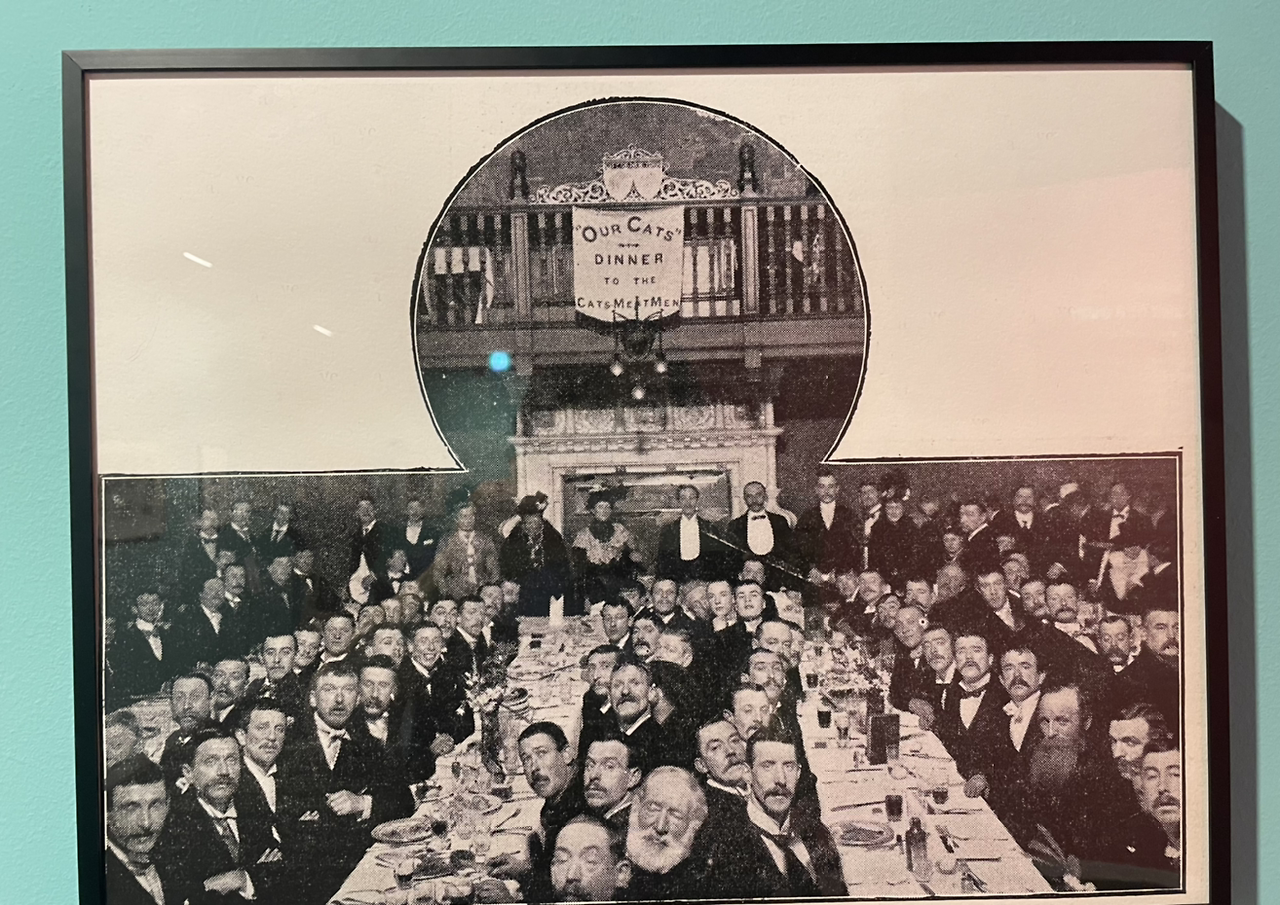 그리고 귀여운 고양이 그림 사이로 재미있는 사진 하나가 눈에 띄었다. 사진 제목은 <런던의 남성 고양이 집사들의 ‘우리들의 고양이’ 저녁파티>. 사진 설명은 이렇다.