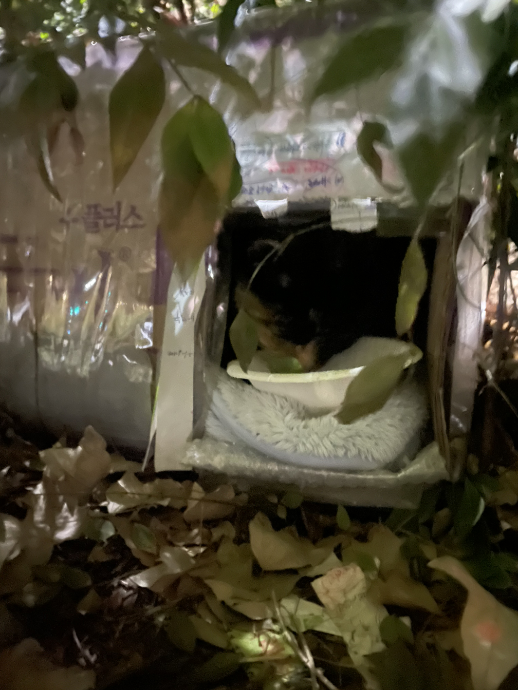 이렇게 겨울철 큰 걱정거리 하나를 덜었다. 생각해보면 우리 냥이와 노랭이는 그나마 운이 좋은 길고양이일지도 모르겠다. 나를 비롯한 몇명의 캣맘이 돌봐주고 있고, 임시지만 공공 주택에 당당히 입주까지 했으니 말이다.