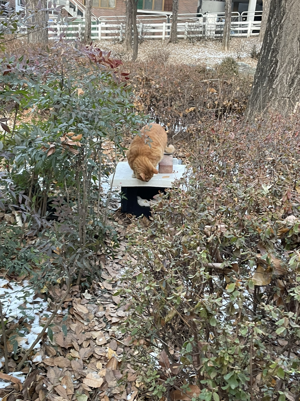 그런데 사람 못지 않게 길고양이도 겨울엔 집콕이 최고라는 걸 아나보다. 예전엔 내가 근처에만 가도 벌써 날 알아보고 “냐옹~” 인사를 하거나 도도도도 다가왔었다. 그리고 반가움의 부비부비 타임! 난 순간 엔돌핀 폭발! 하지만 추운 겨울엔 이런 세러머니가 항상 있진않다.